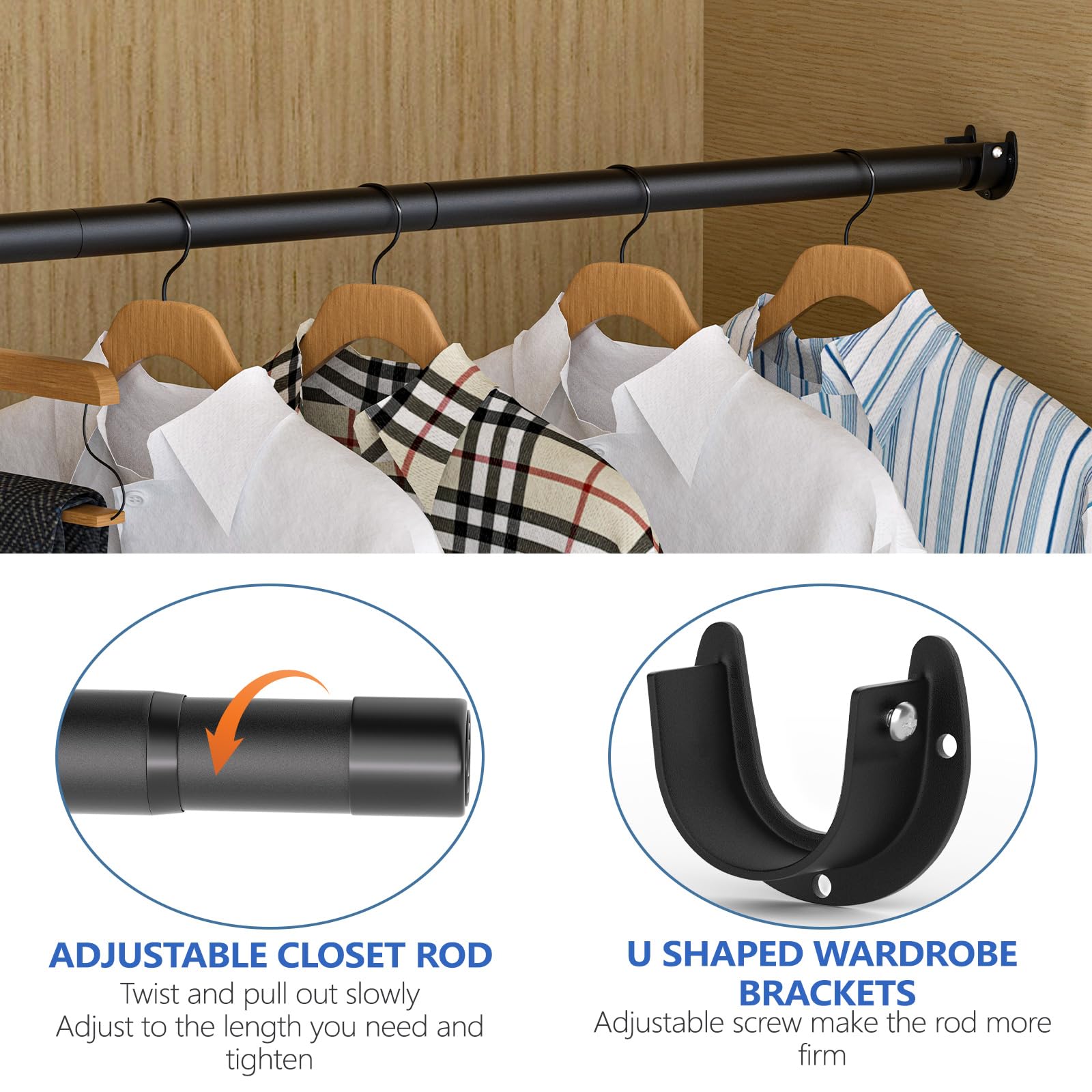 - Flexible & Reliable Closet Rods: You can mount the clothing rod at any height, perfect for lowering clothes to a height within reach of shorter people or those with mobility issues. The hanging rod has a thicker diameter, so you don't have to worry about heavy clothes sagging in the middle of the hanging. Effectively saves closet space, easy to arrange your closet in a more organized way.