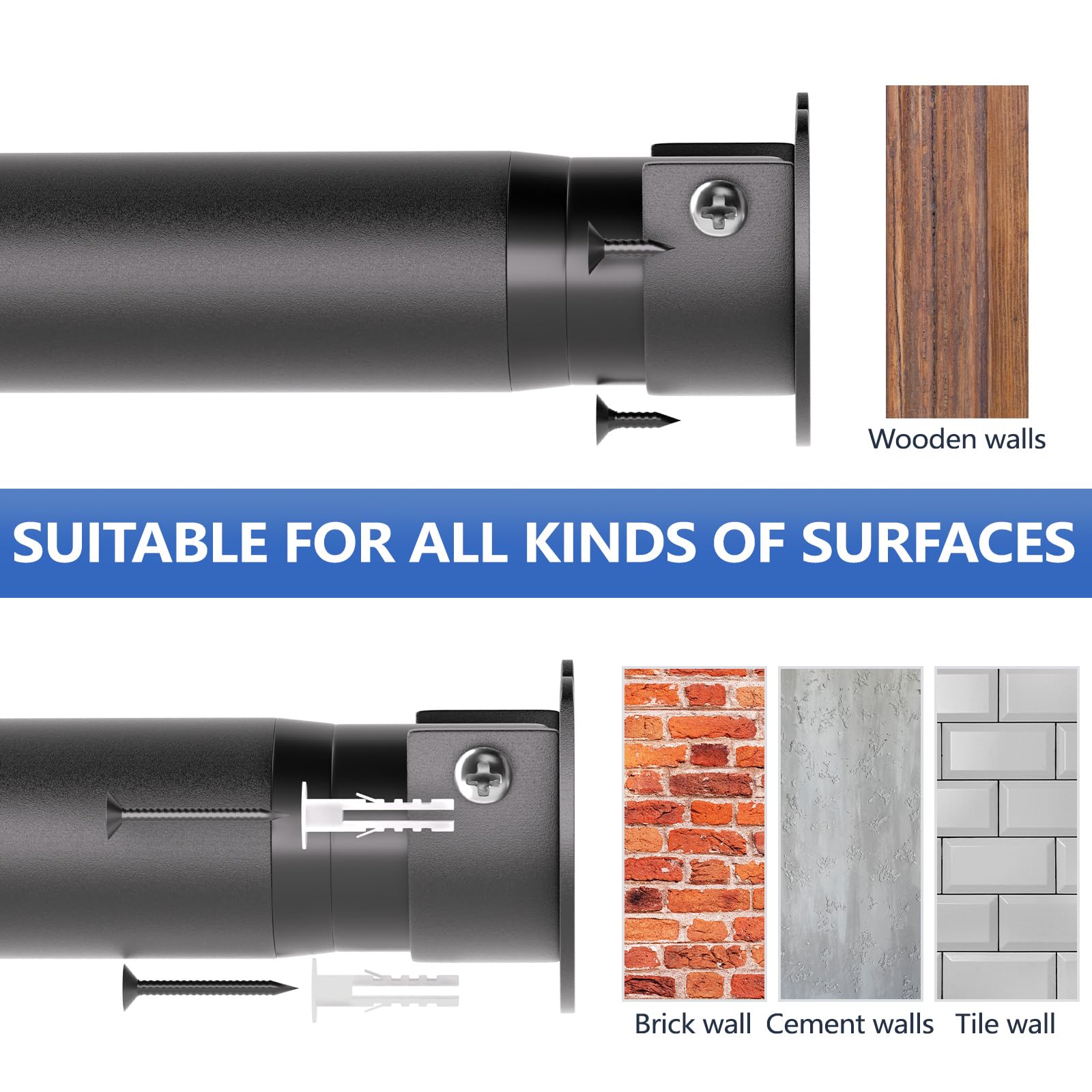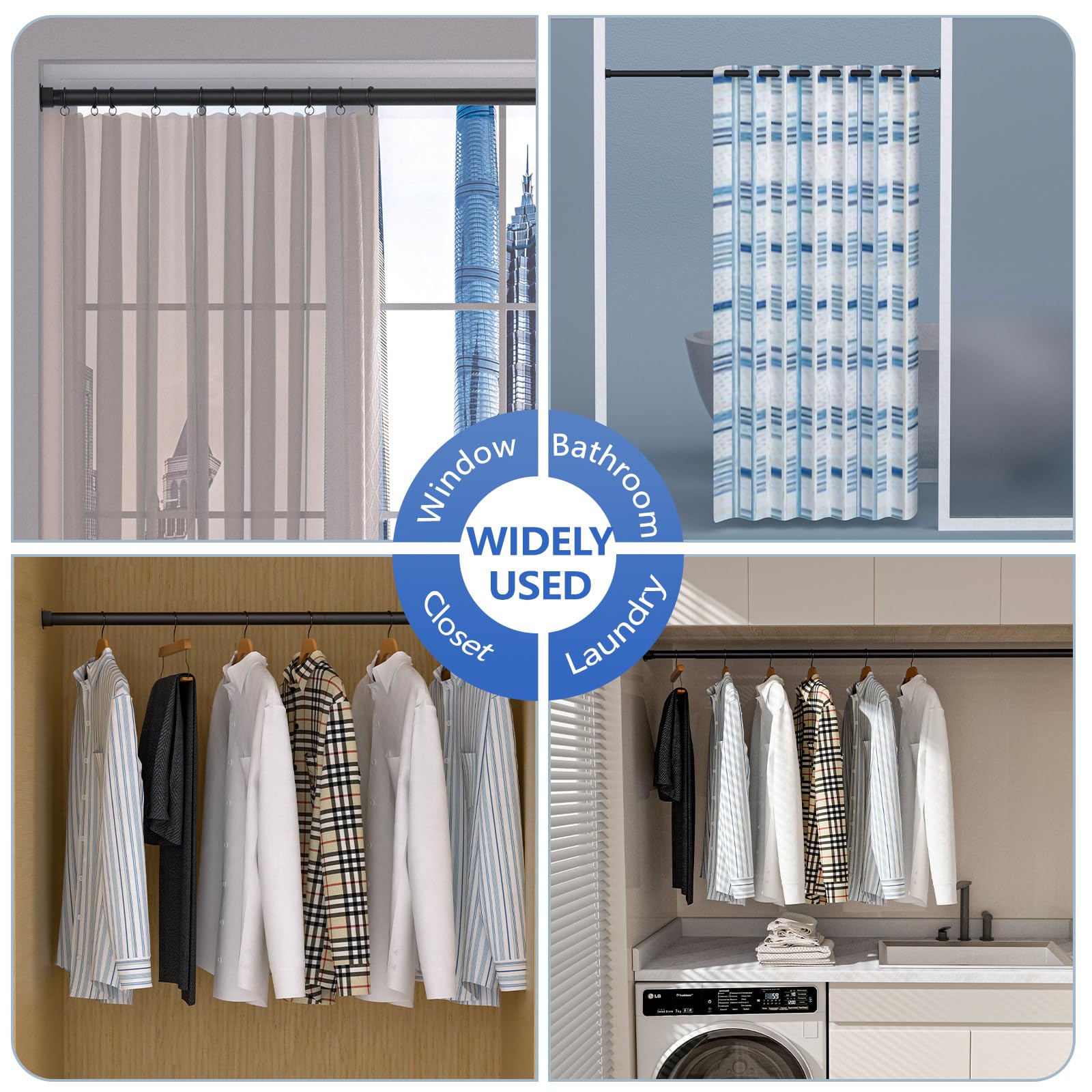 - Multi Purpose Adjustable Rod for Closet: Our black clothes rod can be used in various areas of your home, such as bedroom, bathroom, laundry room, kitchen, patio, balcony, can be used room divider rods, shower curtain rods, hanger rods, curtain rods, window lock rod,plant hanging rods.