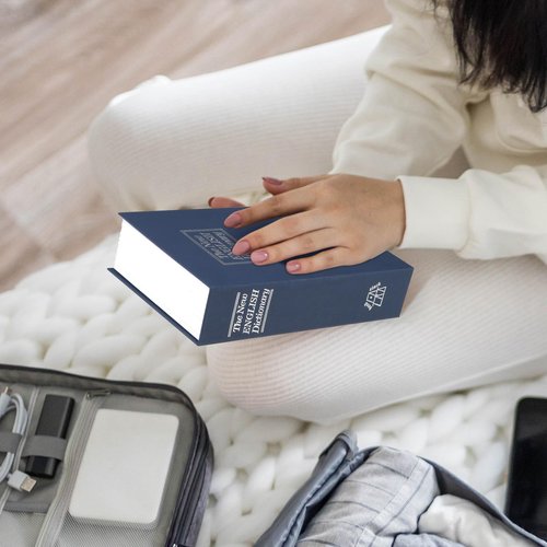 - Size and Color: Book safe is 9.5" x 6.5" x 2 .2" ,Navy Small