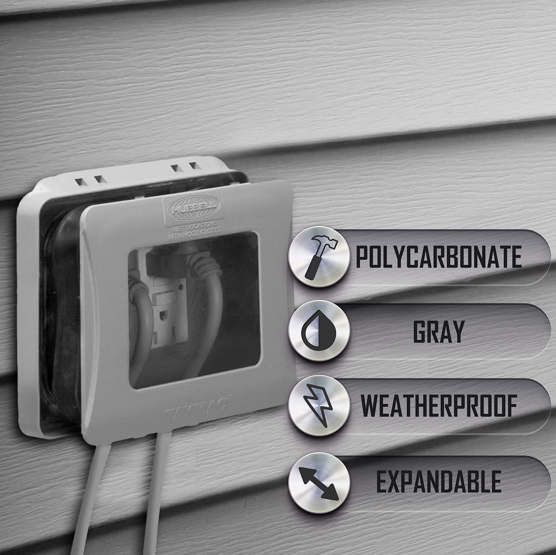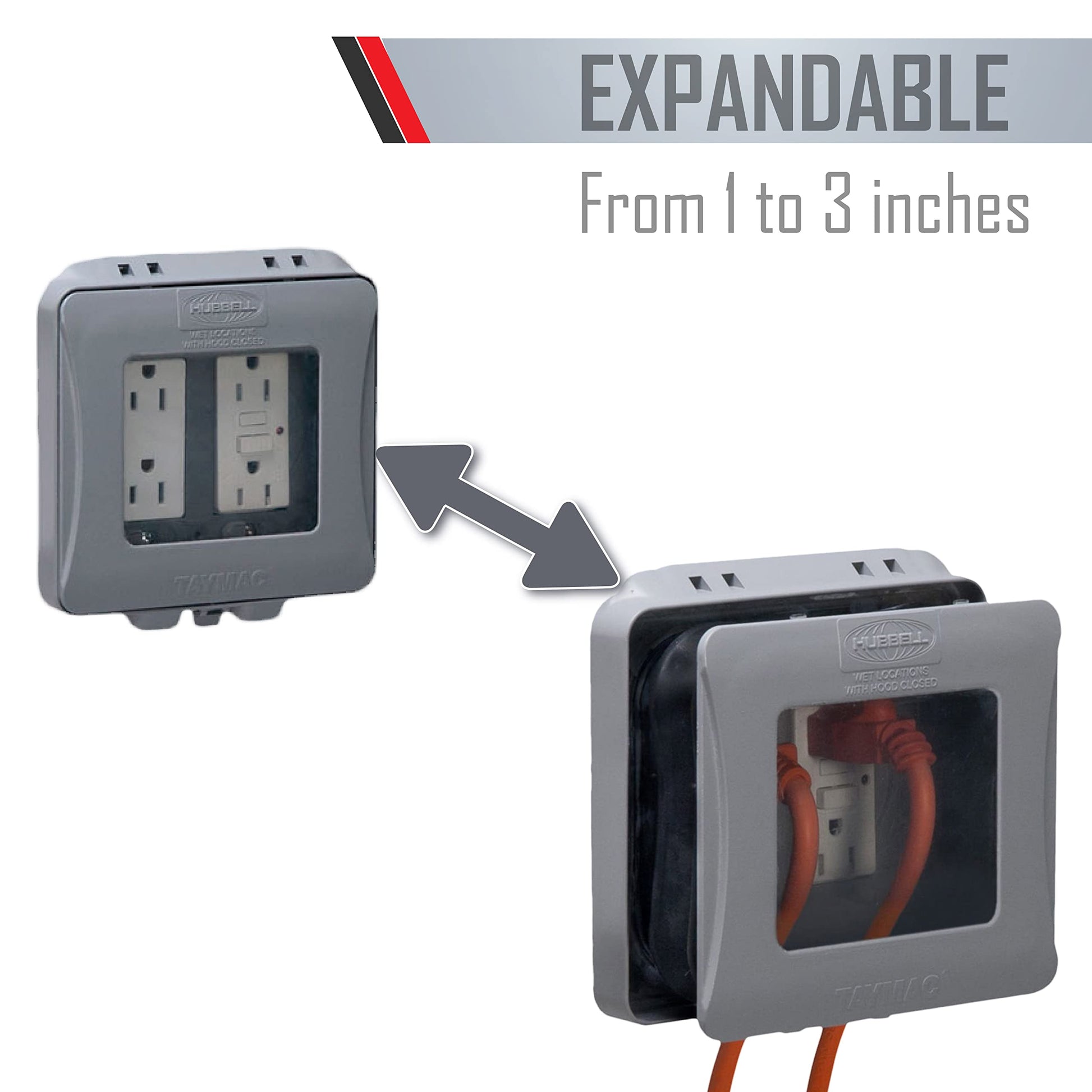 Details: TayMac ML2500G Two-Gang Weatherproof Expandable Extra Duty In-Use Cover Gray Finish