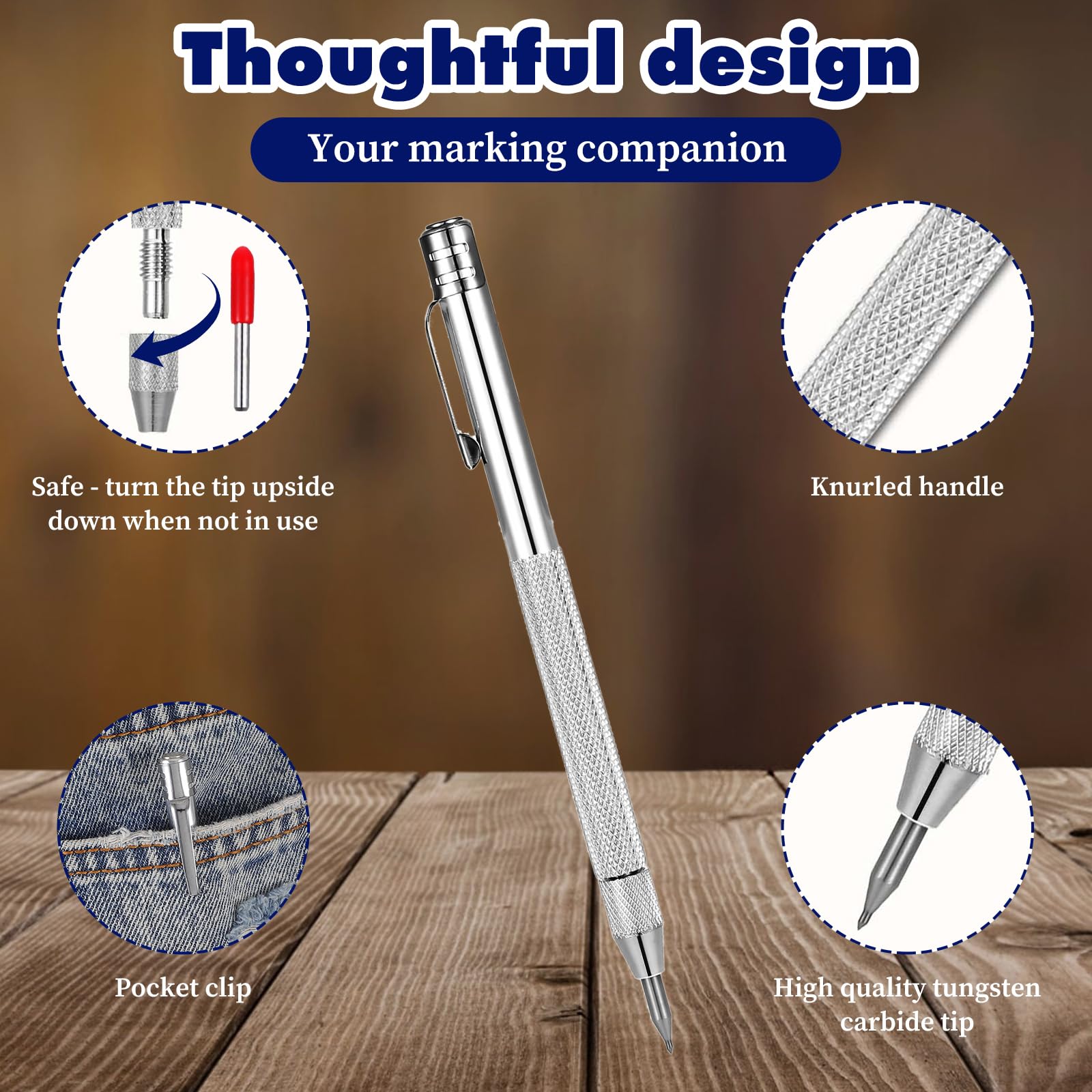 - Versatile for Various Uses:Perfect for engraving, marking, and scoring on metals, glass, wood, and more, this scribing tool is a versatile addition to any workshop or toolkit. Ideal for craftsmen, builders, artists, and hobbyists who need a dependable metal marking pen for daily tasks