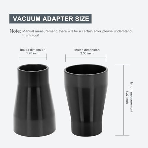 - Reduces from the 2 1/2" table saw outlet down to 1 7/8" vacuum hose