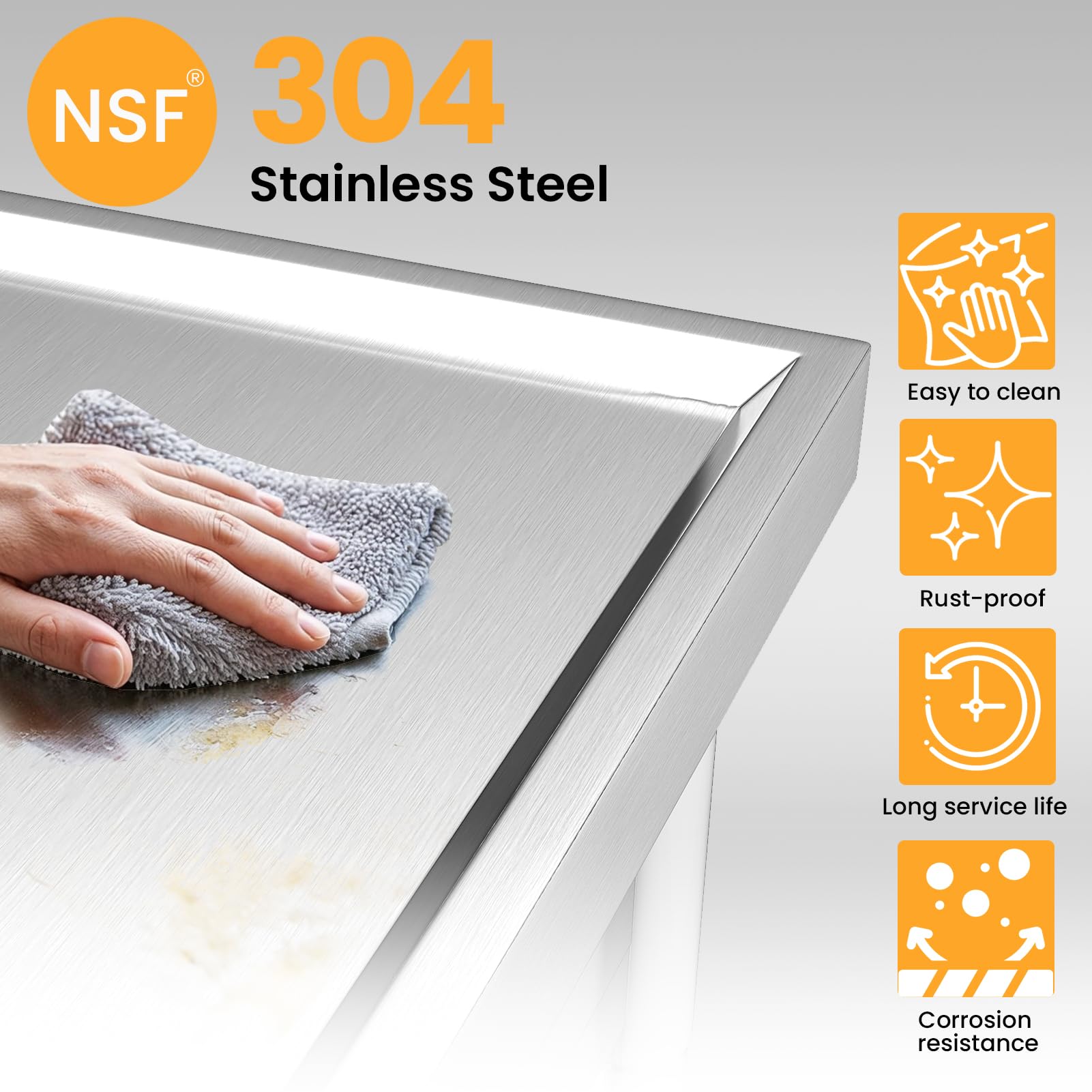 - [STAINLESS STEEL UTILITY SINK]: Crafted from premium 304 stainless steel, this freestanding sink is built to last, offering excellent resistance to rust, scratches, and wear. Its polished surface enhances both durability and aesthetics, while its easy-to-clean design simplifies daily maintenance.