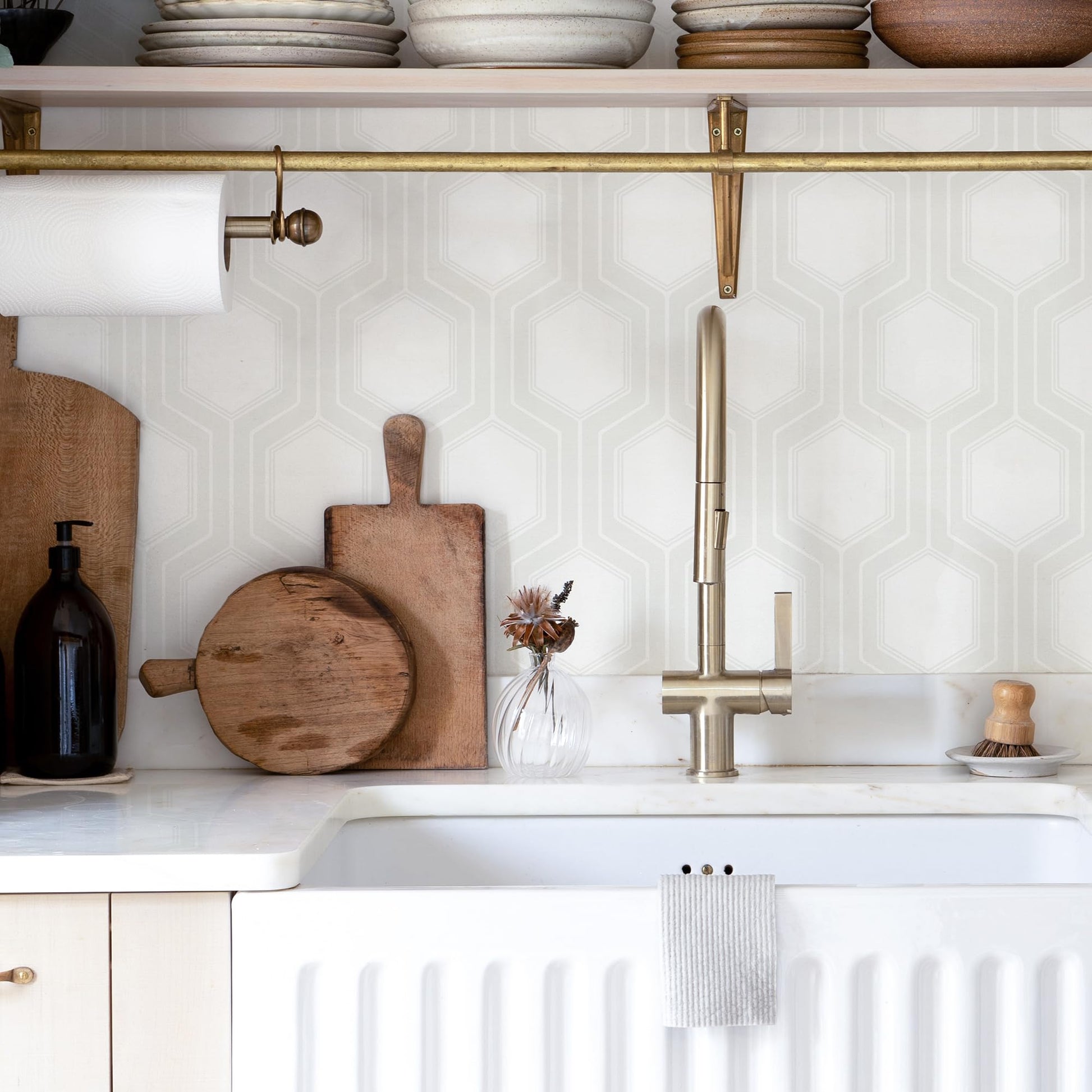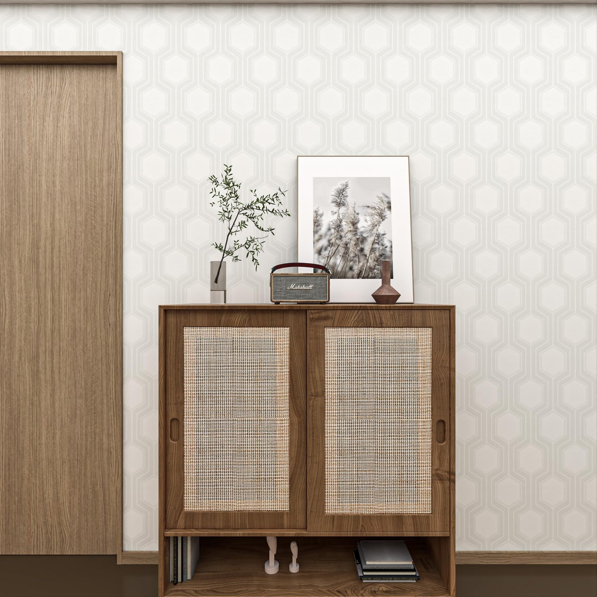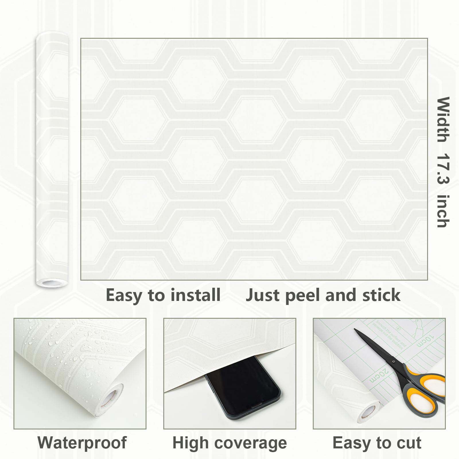 - Stylish Geometric Design – Features a sophisticated hexagon pattern in soft grey and white tones, perfect for adding a touch of modern elegance to any interior space