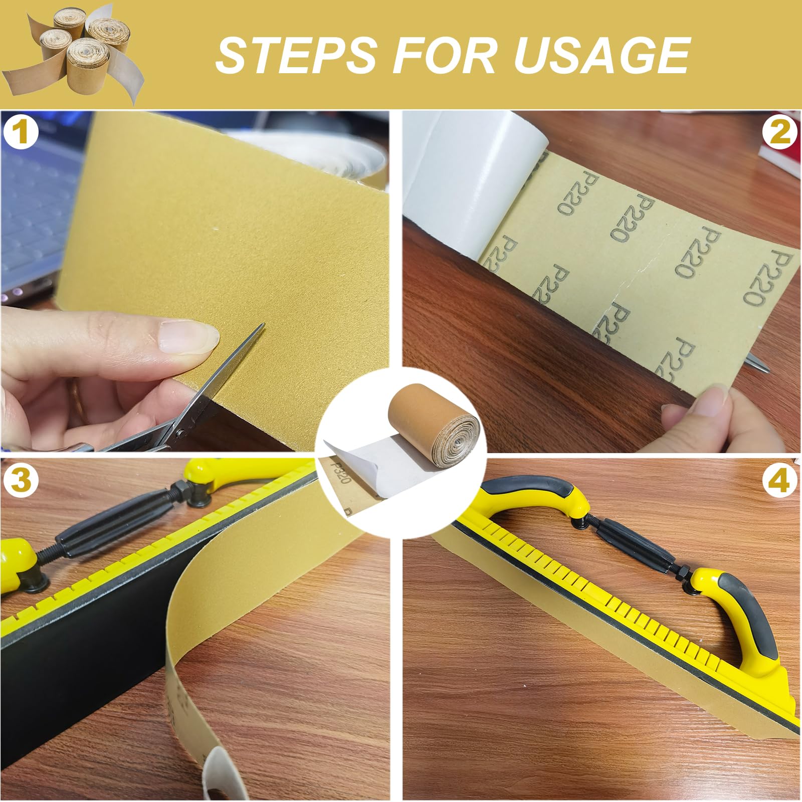- Size & Girt: Each sandpaper roll measures 5 yards long(total 20 yards) and 2-3/4 inches wide, 5 yards each of 80 120 220 and 320 grits .Perfect for rough to fine sanding and quick scratch removal, they can be easily cut to any size needed for hand use or sanding blocks.