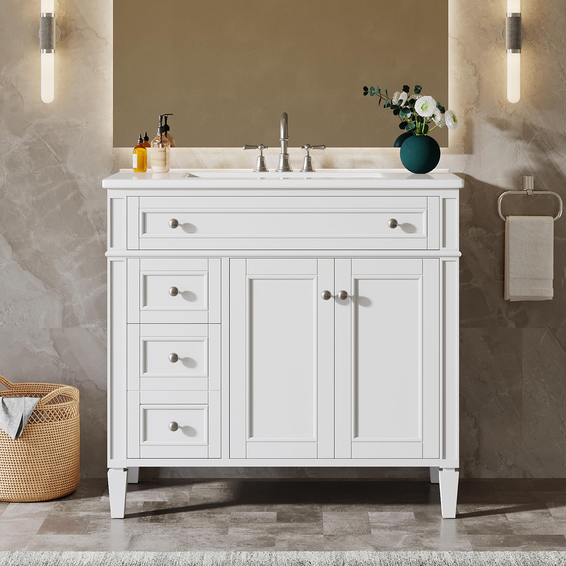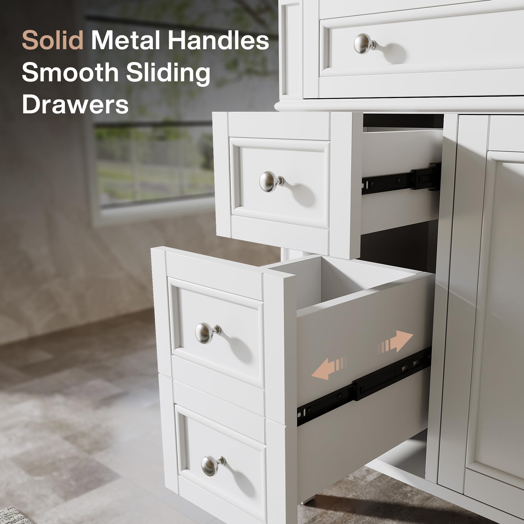 Tribesigns 36" Bathroom Vanity with Sink, Modern Bathroom Sink Cabinet with 4 Drawers & 2 Doors, Bath Storage Vanity Sink with Metal Handles, Solid Wood Frame, Paint Surface White