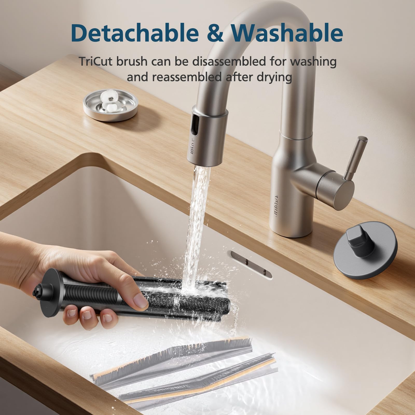 - ๐๐ผ๐ฏ ๐๐๐๐๐ฒ๐ฟ ๐๐ฒ๐๐ถ๐ด๐ป -- The TriCut roller brush features a unique anti-tangle hob cutter design, which can automatically cut and direct human and pet hair to the dustbin. Saving time and effort in dealing with tangled hair