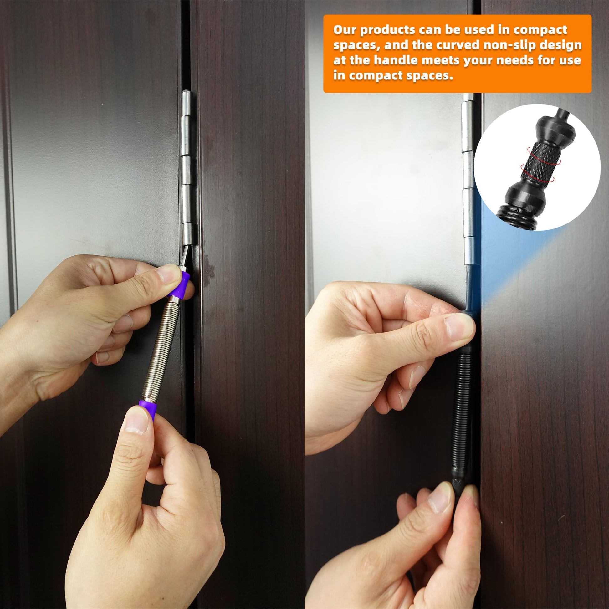 - (4)Hammerless Cold Chisel: The perfect driver tool to easily remove rivets, small screws, mandrels, etc. (5) Hinge Pin Remover Punch: flattens and removes hinge pins effortlessly and can be used without moving the object and without damaging the item by moving it. This nail setter uses a high-strength spring-loaded system with great impact, so no separate tools are needed, and because of the extremely small size, it allows it to be used in tight spaces.