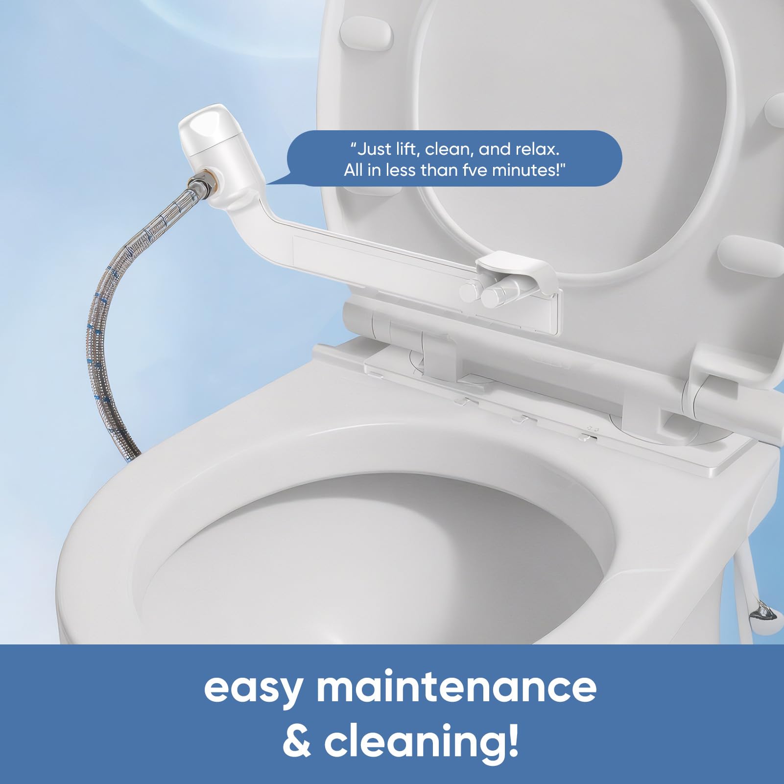 Ultra-Slim Bidet Attachment for Toilet - Dual Nozzle with Adjustable Cold Water Pressure for Frontal/Rear Wash & Self-Cleaning, Hygienic Bidets for Existing Toilets, White