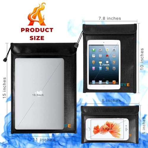 - 3 DIFFERENT SIZE FOR DIVERSE DEMAND: The set includes 15 x 11 inches fireproof document bag, 10 x 7.8 inches fire proof envelope bag and 8 x 5 inches small fire proof wallet bag . Large capacity & widely used, they can store all valuables include bank deposit,legal documents,cash,coin,credit cards,letters,precious photos,marriage certificate,passport and so on.