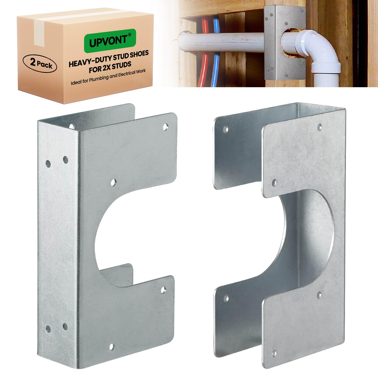 UPVONT Stud Shoes for 2x Studs, 16-Gauge Galvanized Stud Shoes, 6.25" Height, 1.5" Width, Fits Up to 2 3/8" OD Pipes – Thicker, Higher, IBC/IRC Code Compliant, Extra Durable (1.5" x 6.25" - 2 PCS)