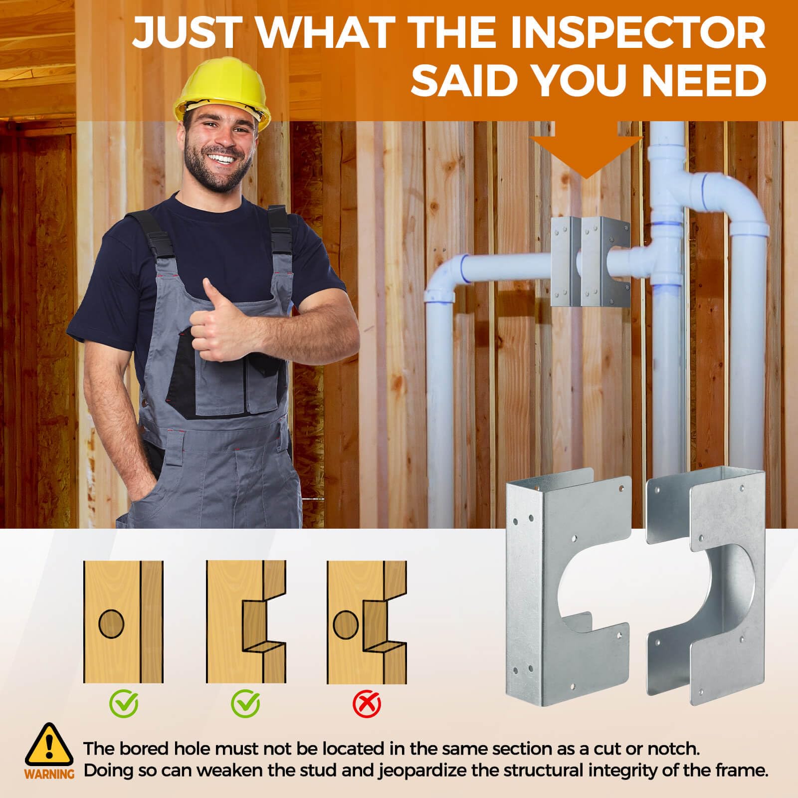 - 🔨INSPECTOR APPROVED: When the size and placement of drilled holes in your studs exceed IBC and IRC code limits, using our stud shoes is a must to reinforce the studs. Our metal stud shoes help you pass structural inspections and ensure codes compliance.