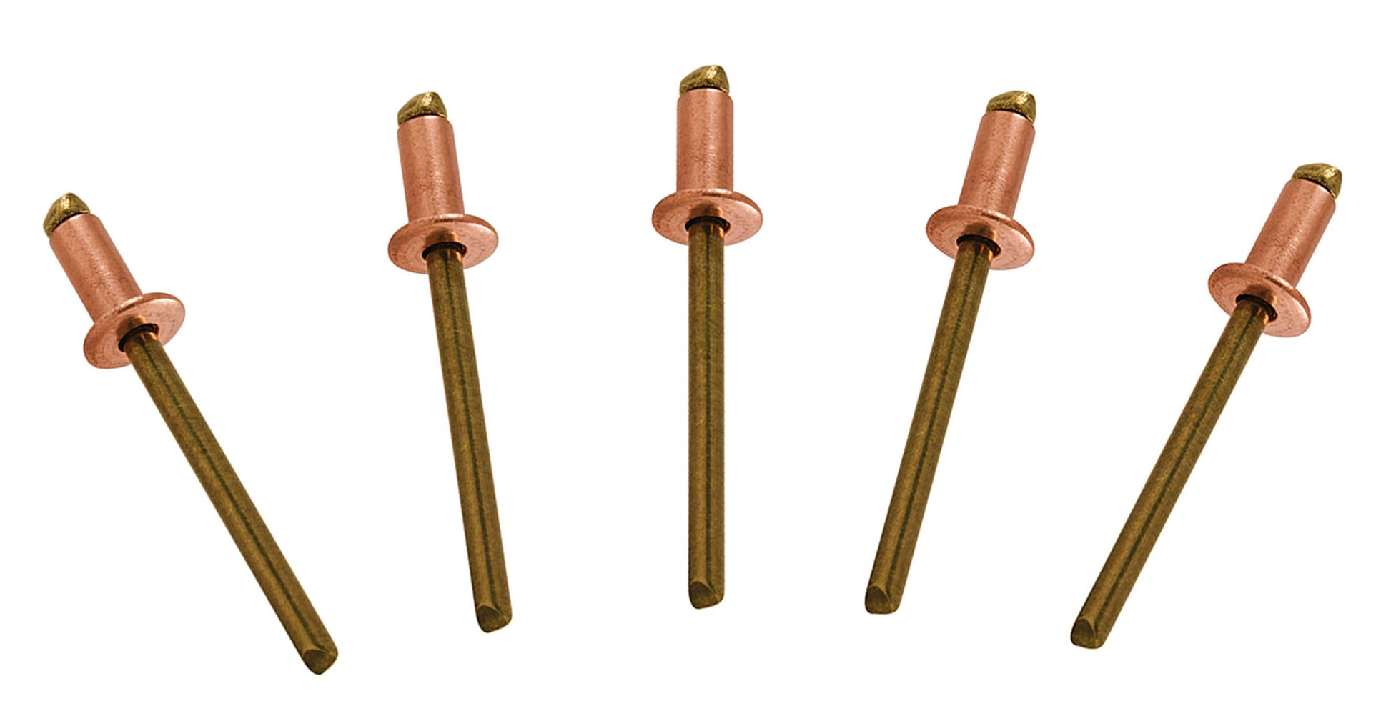 Details: USA Fittings Copper Pop Blind Rivets 1/8" are made with a copper hat and a brass mandrel. Copper rivets are used for both their corrosion resistant properties and decorative finished look. Copper Rivets are commonly found in roofing, flashing and restoration applications.