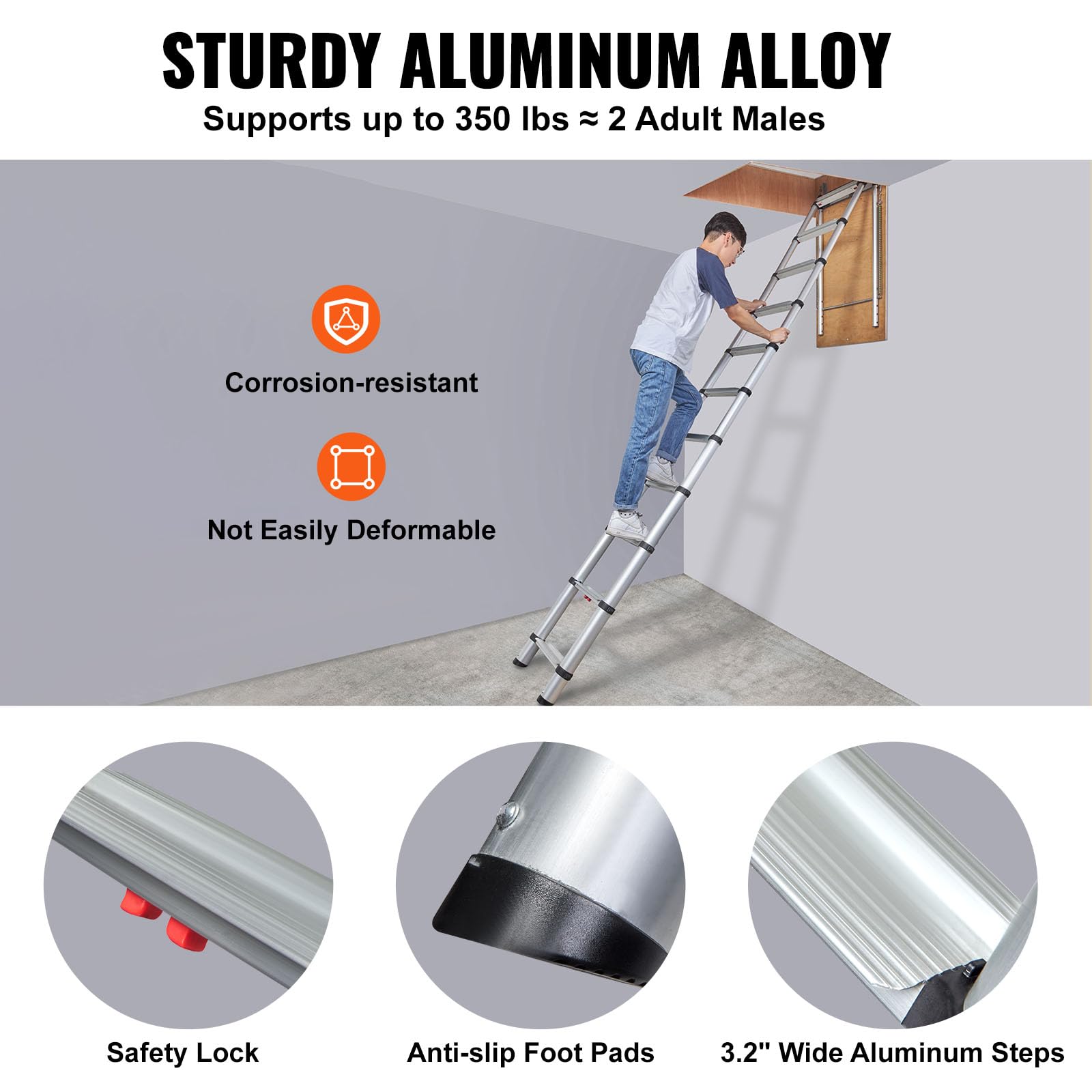 VEVOR Attic Ladder Telescoping, 39.37" x 23.6", Multi-Purpose Aluminium Extension, 350Lbs Capacity, Lightweight and Portable, Fits 10.1'-10.7' Ceiling Heights, Convenient Access to Your Attic Standard