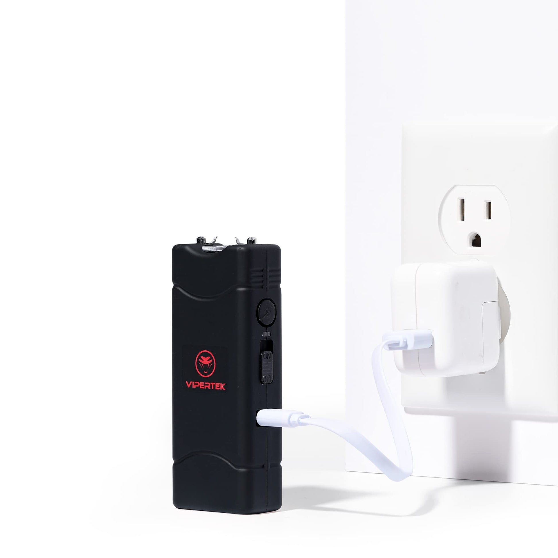 VIPERTEK VTS-881 Micro Stun Gun for Self Defense Rechargeable with LED Flashlight, Black