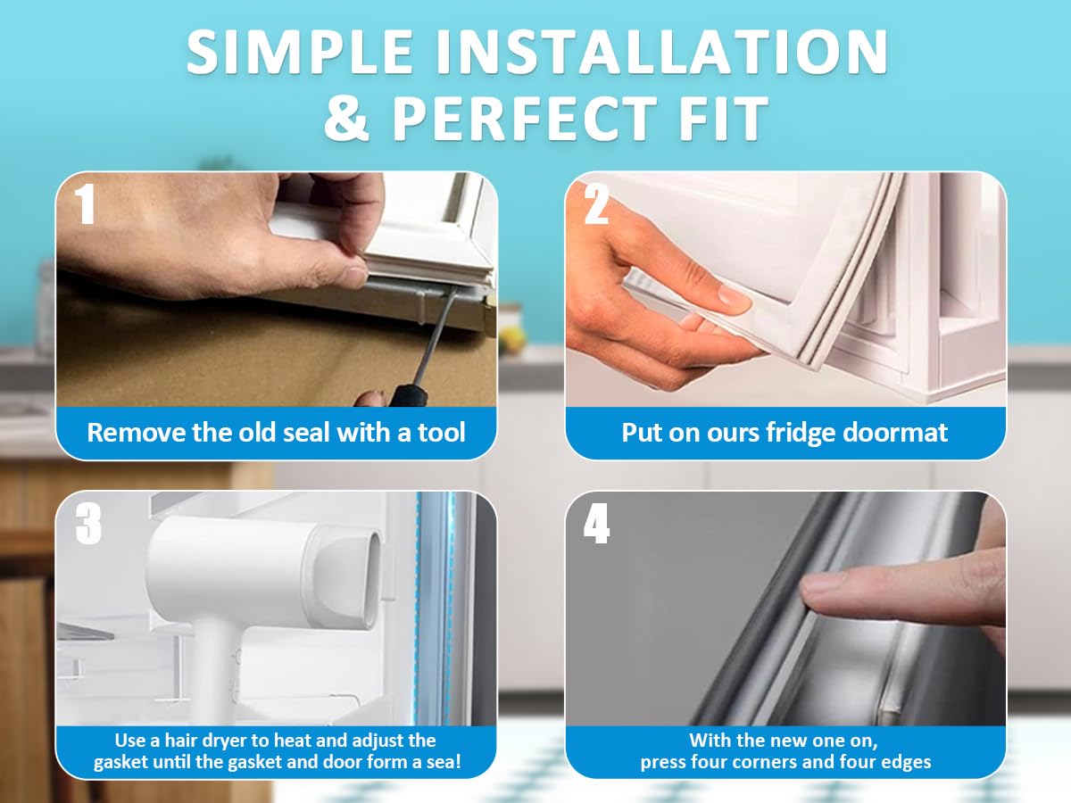 - 【Easy Installation】You may need to prepare a screwdriver, a hair dryer, a roll of tape. Then began to install: step1,Unscrew the panel, remove the old freezer door gasket; step2,Install the four corners first and then press the middle back and forth to make it docile; step3,After installation, use a hair dryer to heat up the sealing strip and blow it for a while to smooth the creases; step4,Fix the refrigerator door with tape until the next day.