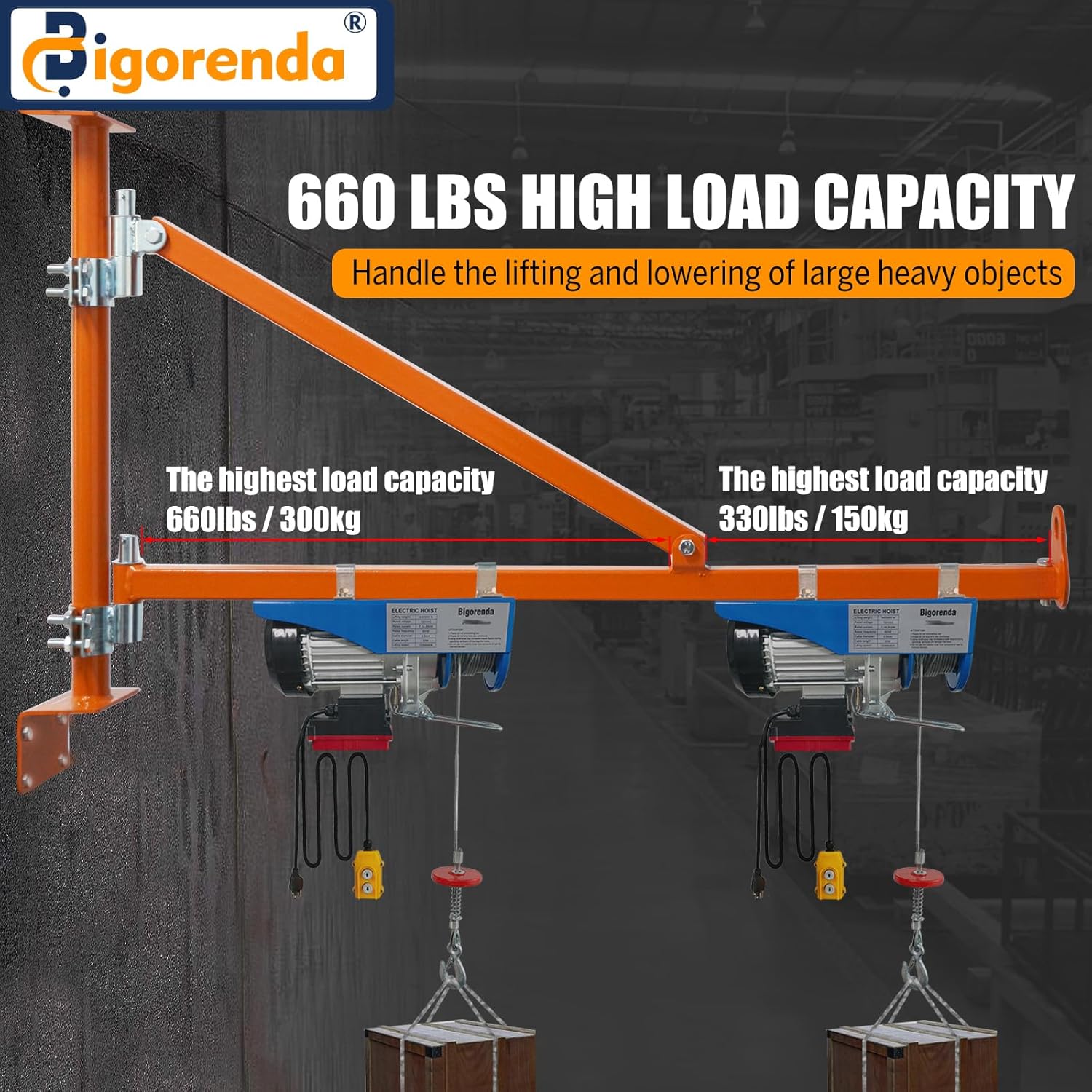 - 【Multi Functional and Space Saving】This jib crane is compatible with most electric hoists, from home decoration to warehouse operations, factory workshops to maintenance departments. Our electric hoist arm is your preferred solution for lifting, moving, and more. Adopting an inverted triangular support design, it saves space and is very suitable for compact work areas.