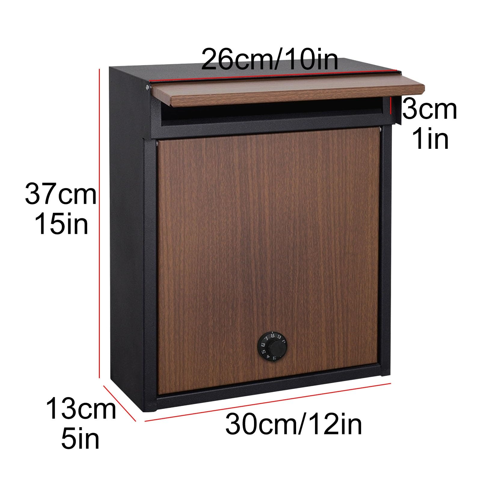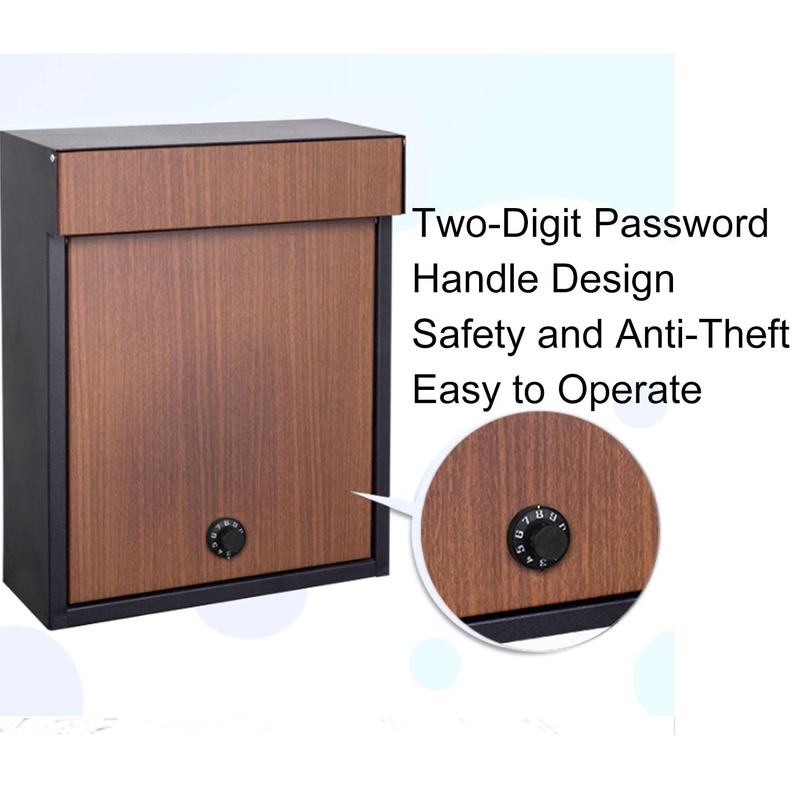 WAMJ AQDY Locking Mailbox Wall Mount, Outdoor Mailbox, with Combination Lock, Large Metal with Wood Grain Door, 12 × 5 × 15 in(Brown)