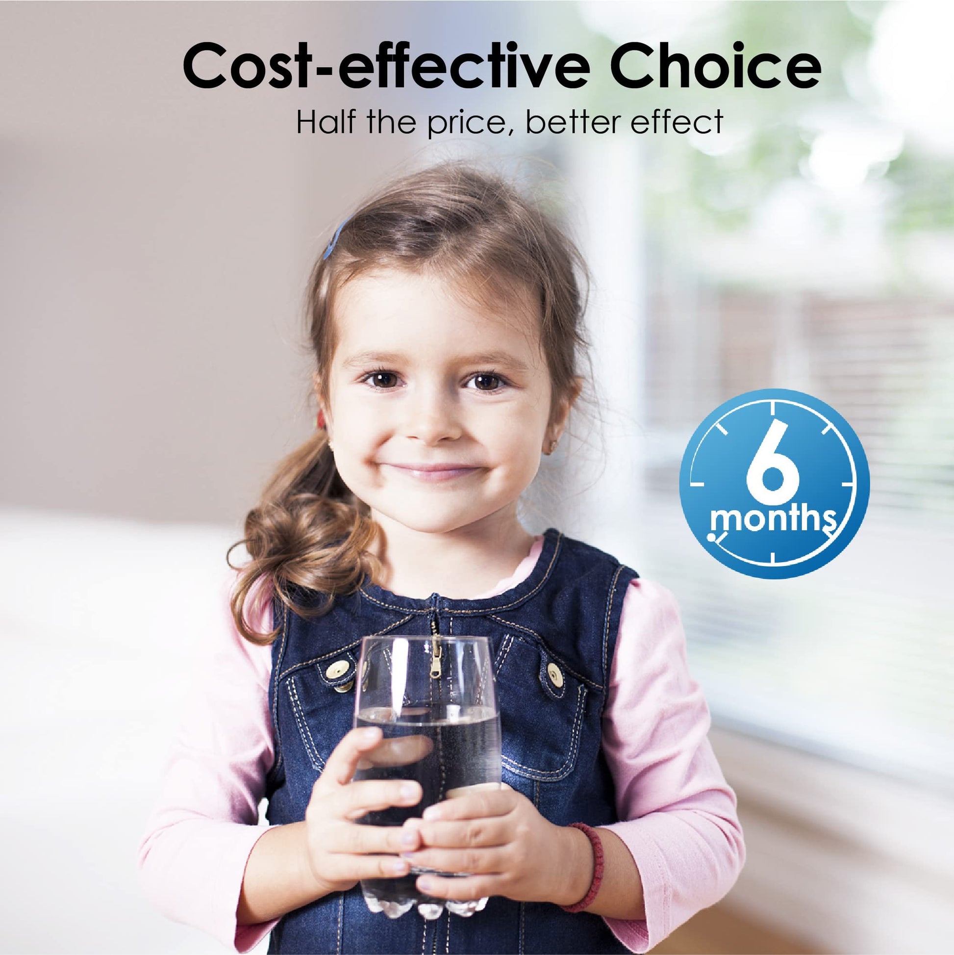 - [Monthly install stickers] Our complimentary set of monthly install stickers allows you to keep track of the filter’s lifespan. The filter life is 6 months or 300 gallons, which will vary based on the water conditions.