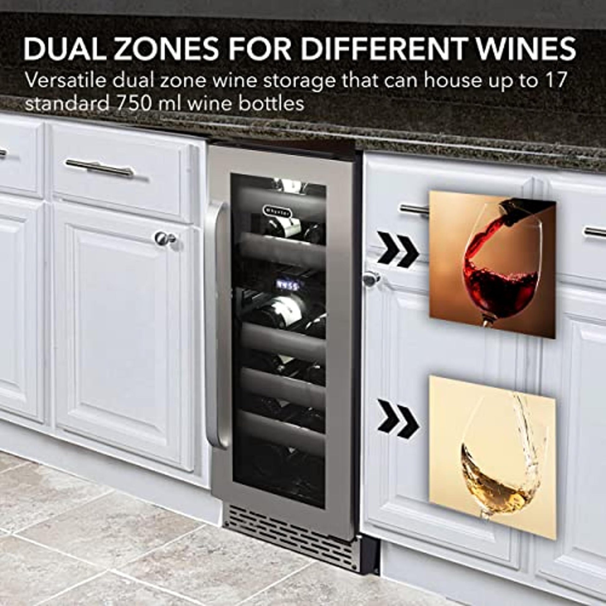 - Dual zones for storing different wine varietals