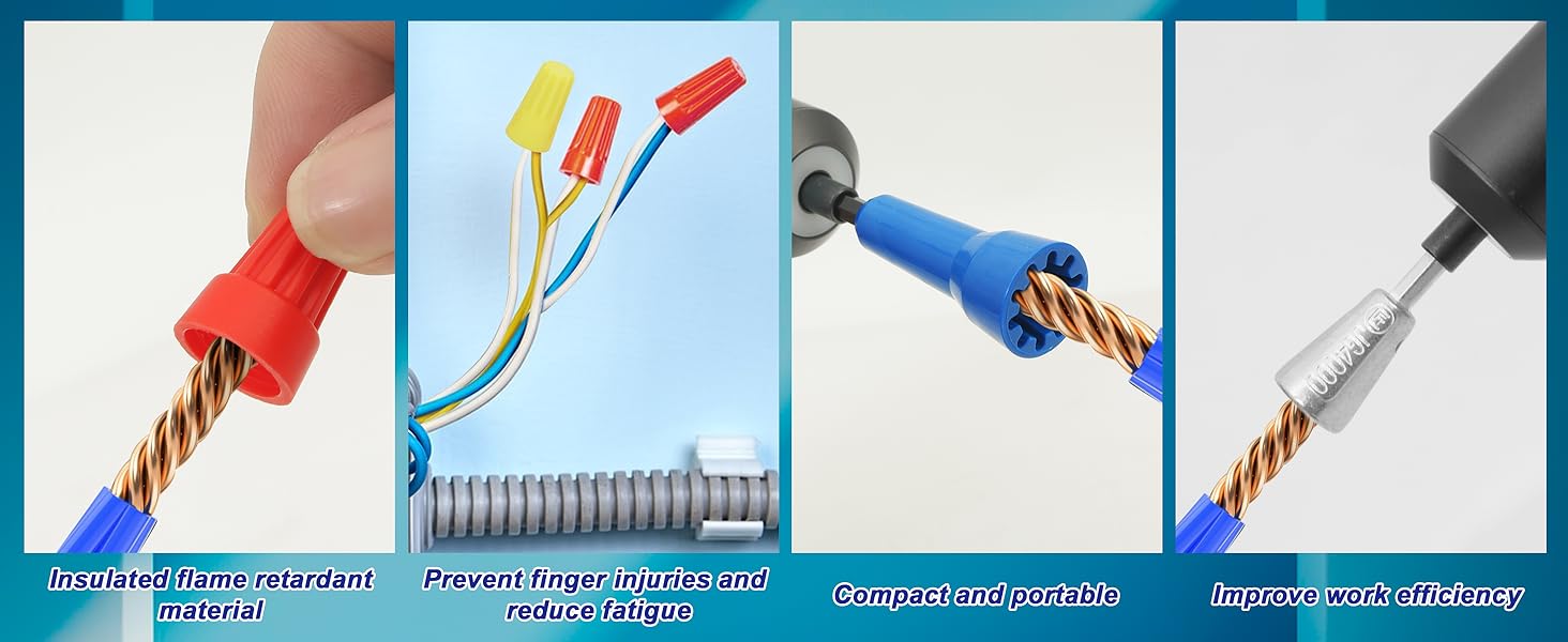 Wire Stripper for AWG,14-12-10-8 Gauge Wire Twister Tool for Drill,Cable Quick Stripping & Wire Twisting Connector Set and 5pcs Wire Connectors Nuts