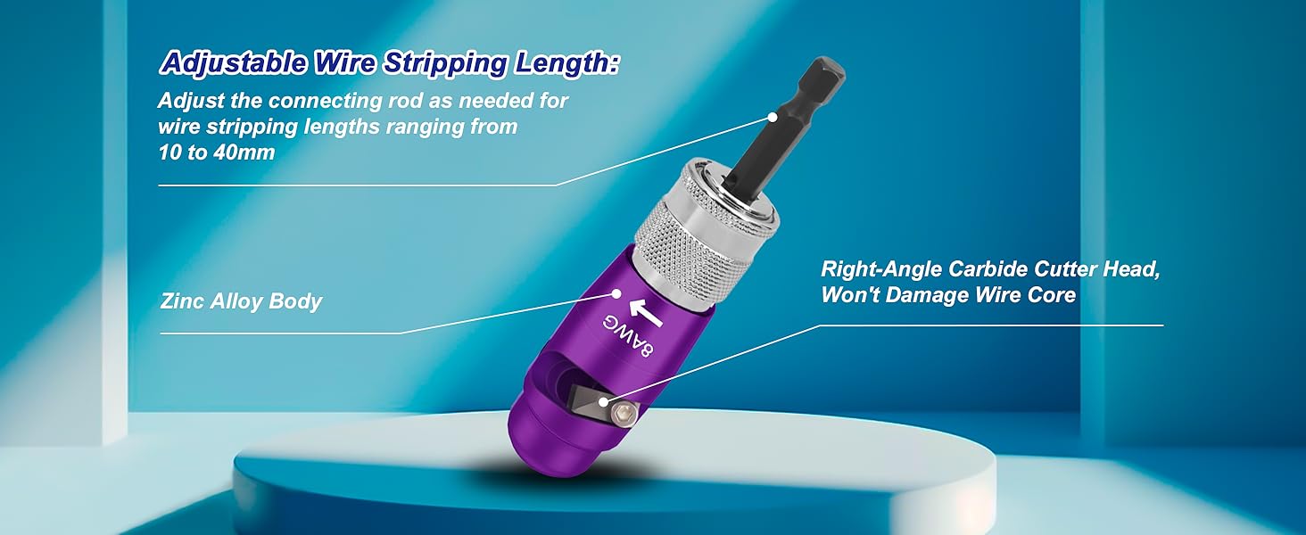 - Efficient Wire Stripping - The wire stripper to the drill meets AWG standard wire gauge, can quickly and accurately strip the insulation of 14AWG, 12AWG, 10AWG, 8AWG, 6AWG solid core conductors and stranded wires.(Note: only the 14AWG stripper can strip 14AWG stranded wire , the other models can not be strip stranded wire)