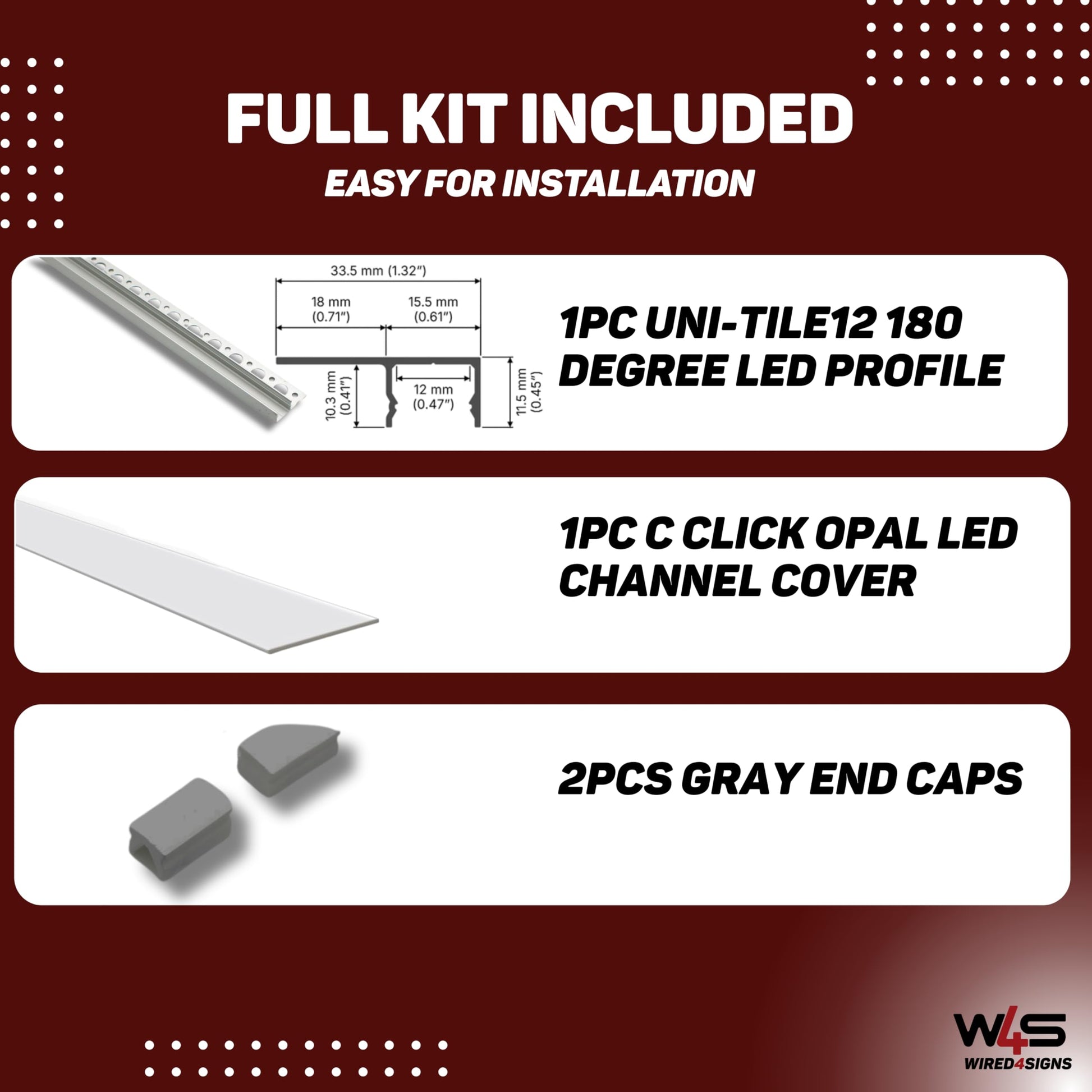 For fully integrated lighting design, pair the Uni-Tile12 180° version with the 90° and 270° corner profiles to create continuous lighting around walls, niches, and tile corners. Kits include the profile, diffuser, end caps, and clips—or order as separate components to meet your project needs.