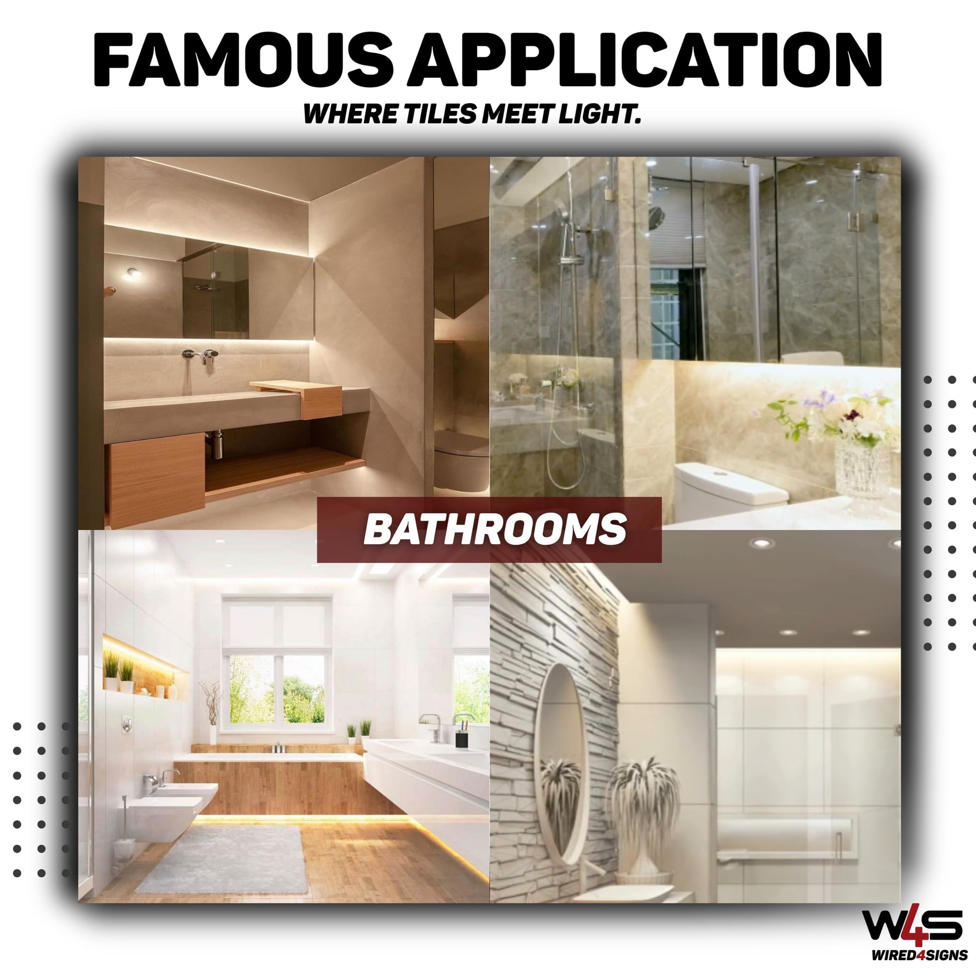 - FLEXIBLE APPLICATION WITH OTHER CORNER PROFILES Use this flat-surface 180° version for tile edges or borders, and pair with Uni-Tile 90° or 270° models for corners or niches to achieve a seamless full-tile illumination layout.