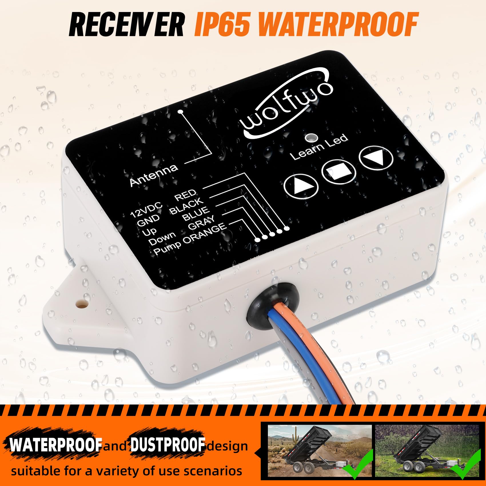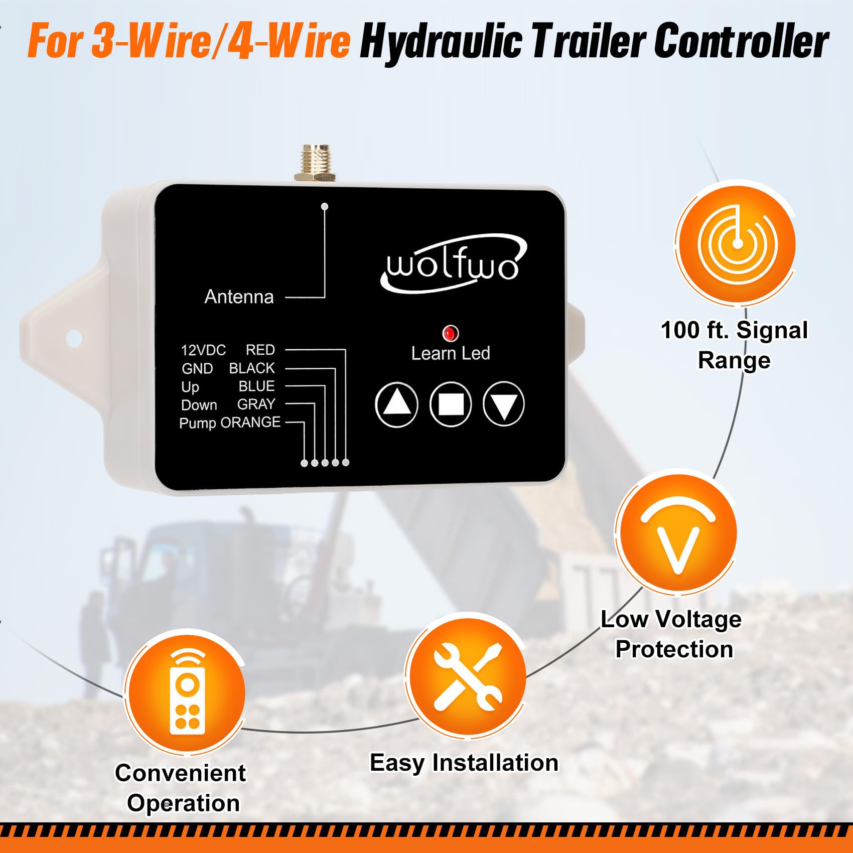 - UPGRADED WIRELESS REMOTE-Wolfwo Dump Trailer Wireless Remote Controller, operating your trailer safely from anywhere – the cab, beside the trailer, or walking behind while spreading material, with no worries of driving over or snagging wires again