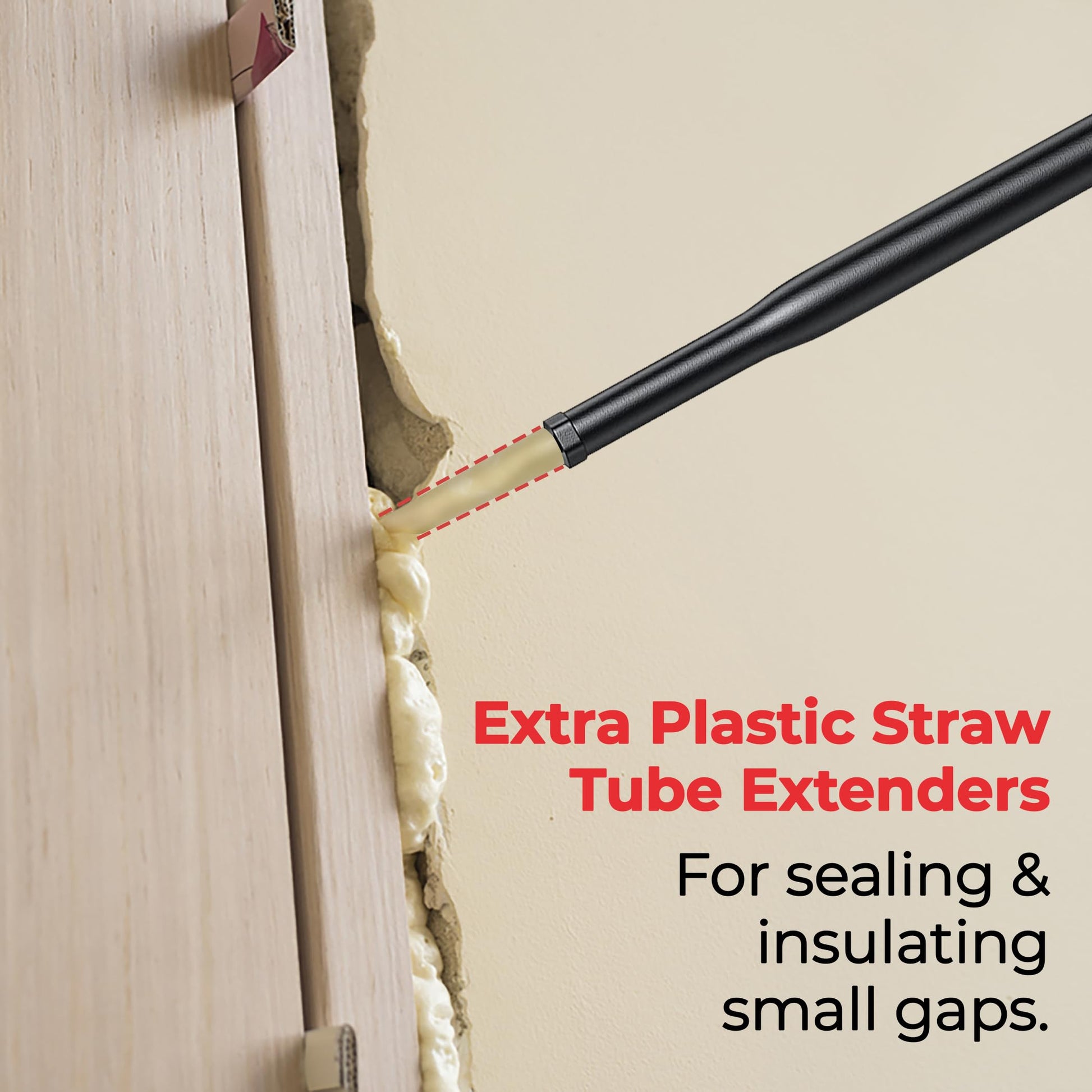- EASY TO USE FOAM GUN INSULATION : Attaching the foam gun insulation is a breeze just screw it onto the gun and you're ready to start. Once your project is complete, you can easily close the spray foam gun and leave the canister attached for future use. Easy to operate polyurethane foam projects and durable. Also include plastic straw tube extenders for foaming hard to reach areas or smaller gaps. Foam dispensing gun helps owners to save money and time.