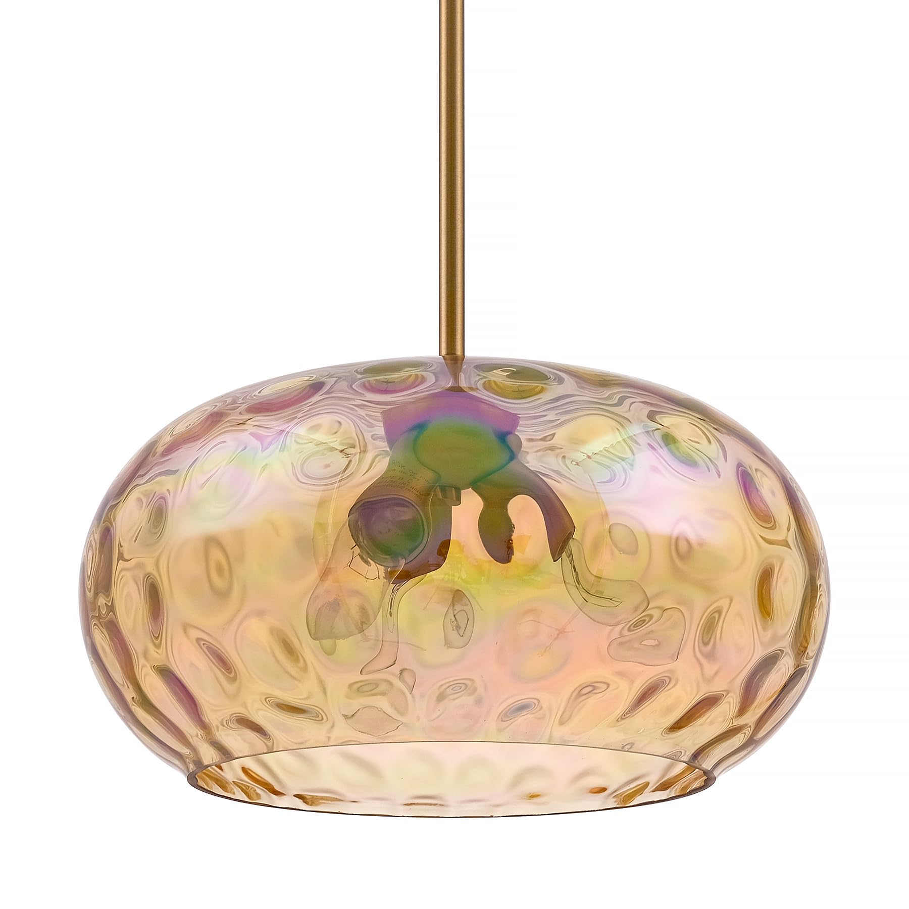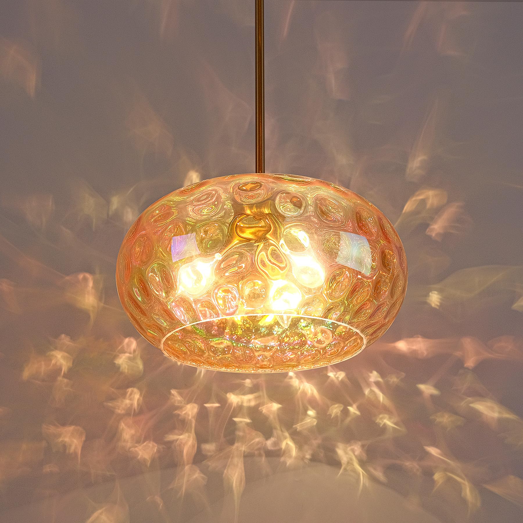 Wrlmfy Large Glass Pendant Lighting, Hammered Lampshade Chandelier with Height Adjustable Hanging Rods, Brass Gold Chandelier for Dining Living Room Kitchen Island (Colorful Deep Amber, 14 Inch)