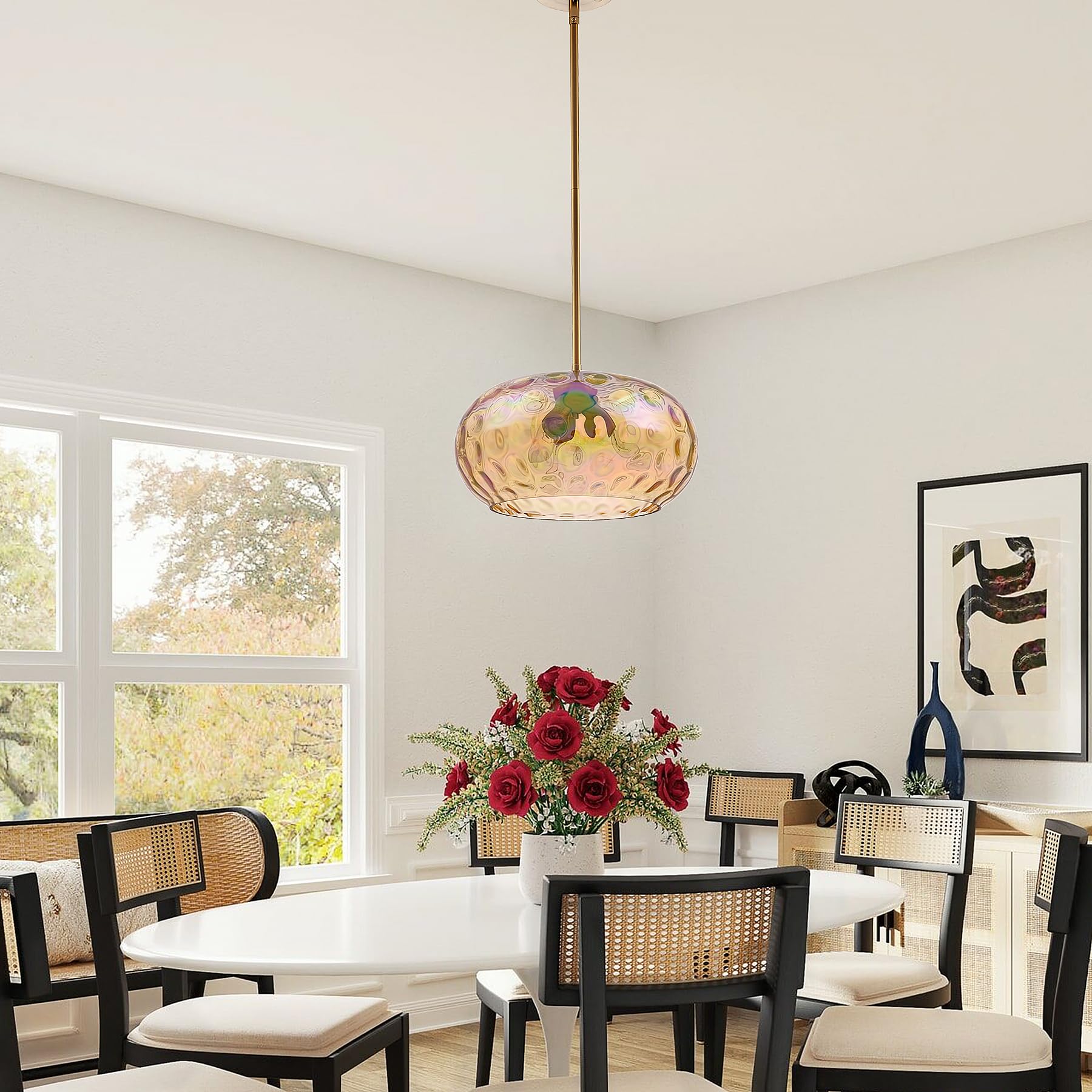 - Gorgeous Stunning Design: The Wrlmfy pendant lighting features a 14" large hammered lampshade with prismatic lighting shadow and sleek brass gold iron metal, adding a touch of luxury and mid-century modern to any room.
