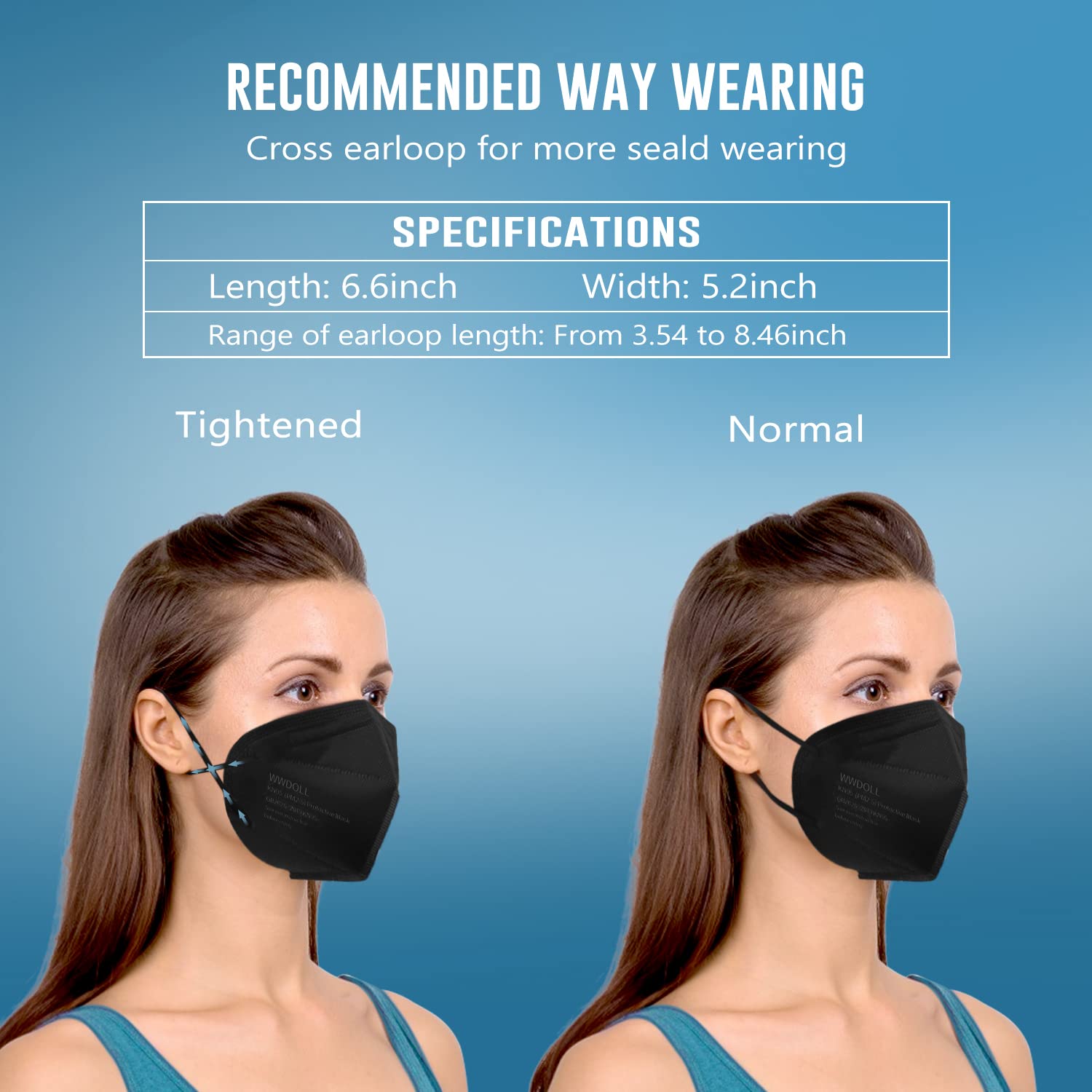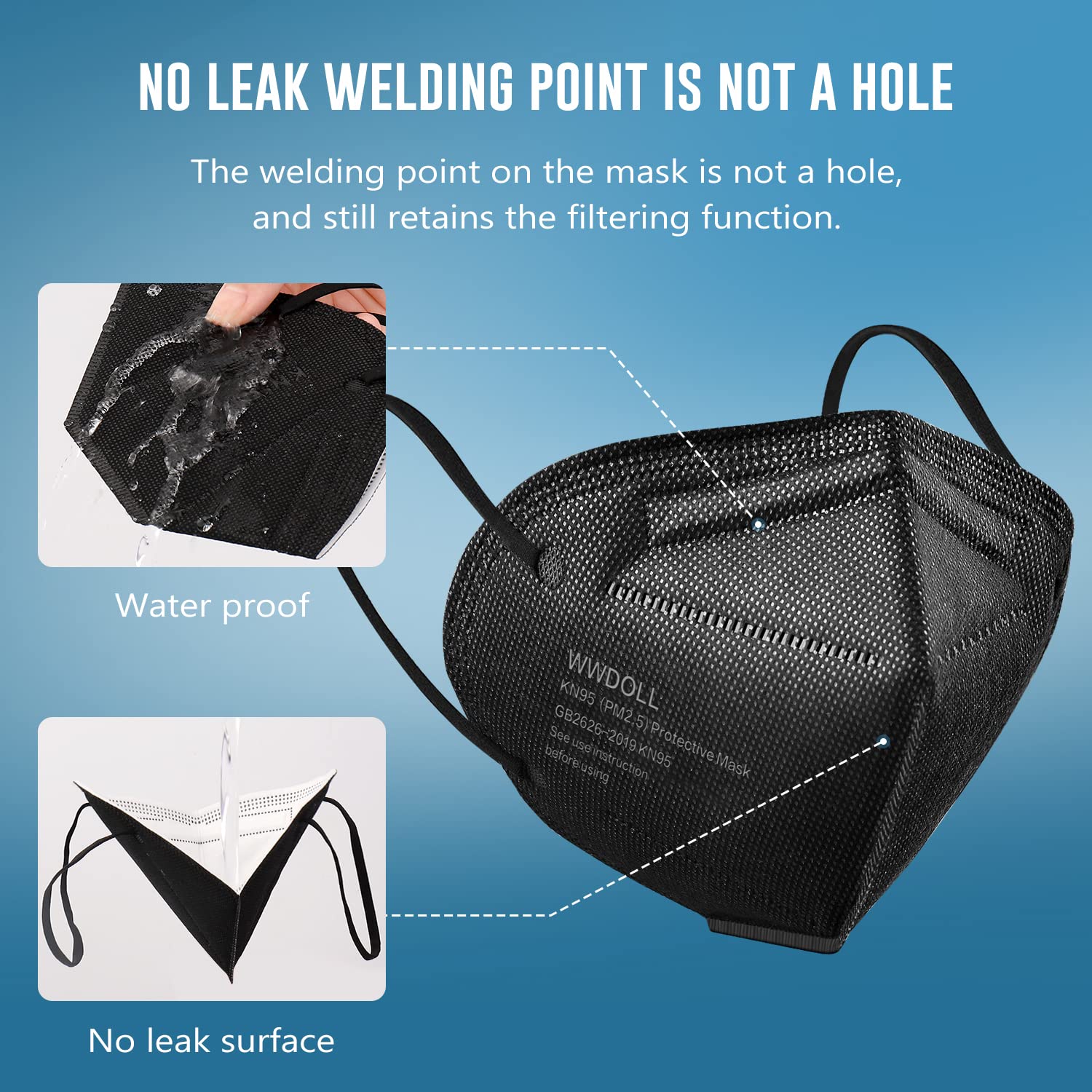 WWDOLL KN95 Face Masks 50 Pack, 5-Layer Breathable Disposable Respirator Mask for Adult Black