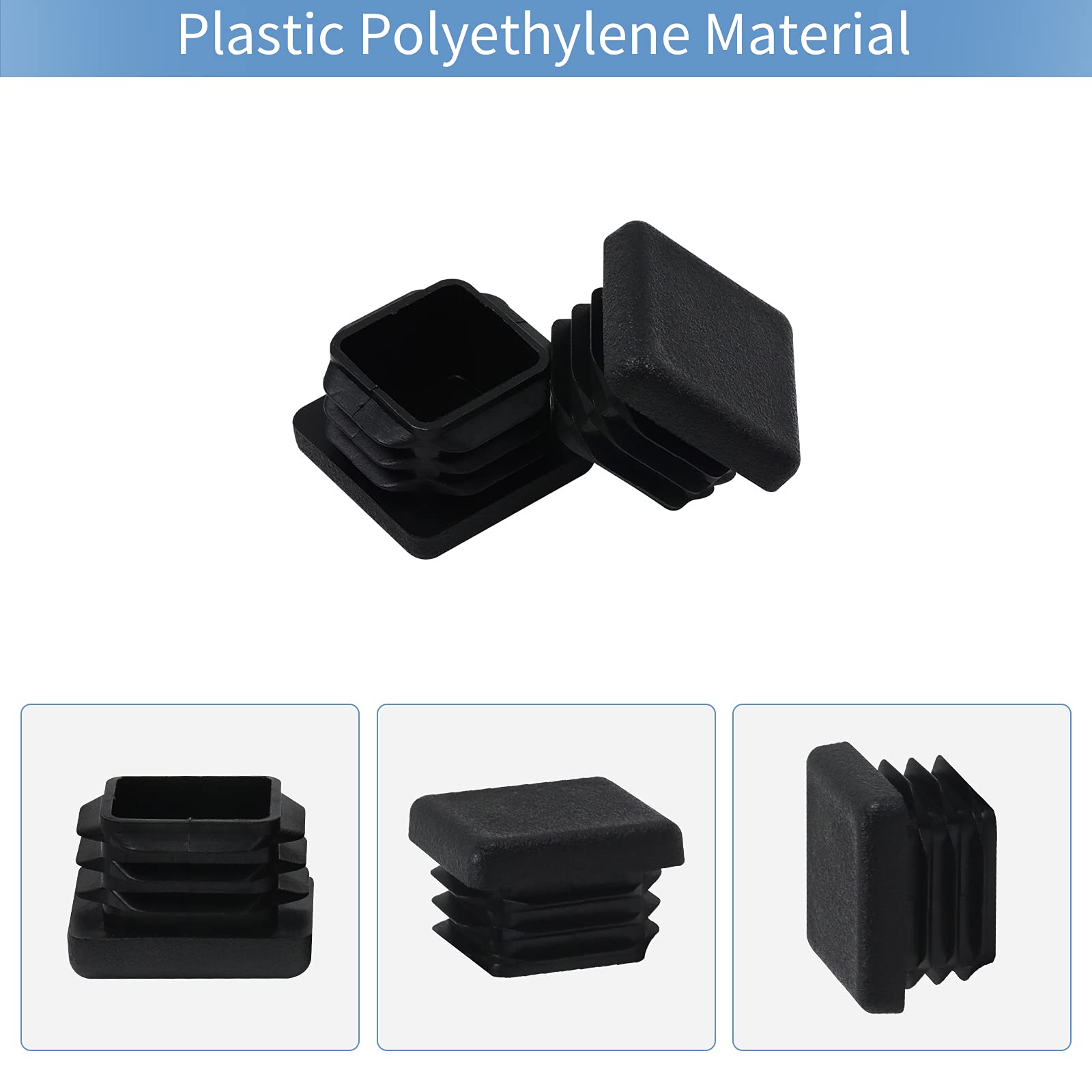 Details: The black square tubing plug is made of premium plastic, it is widely used to chair legs, bench feet, table legs, bar stool foot, and fences/fencing railing posts, furniture end covers, fitness equipment end covers, gate rail post covers, trailer frame ends, pole pipe rod caps, metal bike rack fittings, wrought iron steel finishing plugs, or any sqaure opening.Features1. Ribs design of tubing plug can provide a sure grip inside the tube, not easy to fall off. 2. Reduce friction, protect floor without scratches, easy glides.3. The square tube end cap is easy to use that no tools needed. You are able to install by hands within minutes.4. They serve as a long-lasting solution for many household or outdoor projects.SpecificationsShape: squareColor: blackMaterial: plasticSize: 1 inch x 1 inch (25mm x 25mm) outer diameter (OD)Package Content12 x 1 Inch Square Plastic PlugsWarm TipsWhen you buy before, please check size of the plastic plug is suitable for your tubing.