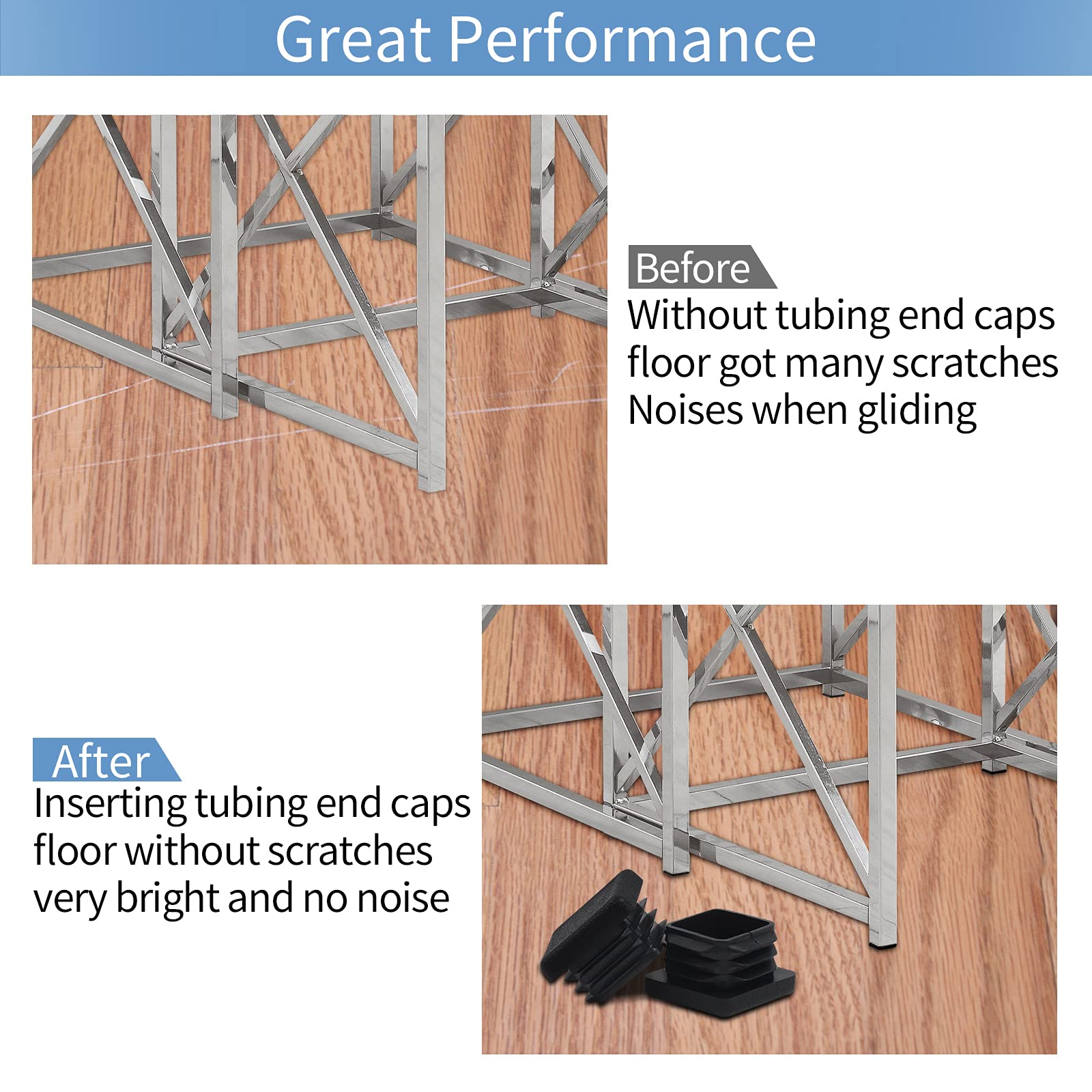 - ◆【Multipurpose】 - The tubing insert cover is widely used to chair legs, bench feet, table legs, bar stool foot, and fences/fencing railing posts, furniture end covers, fitness equipment end covers, gate rail post covers, trailer frame ends, pole pipe rod caps, metal bike rack fittings, wrought iron steel finishing plugs, or any sqaure opening.