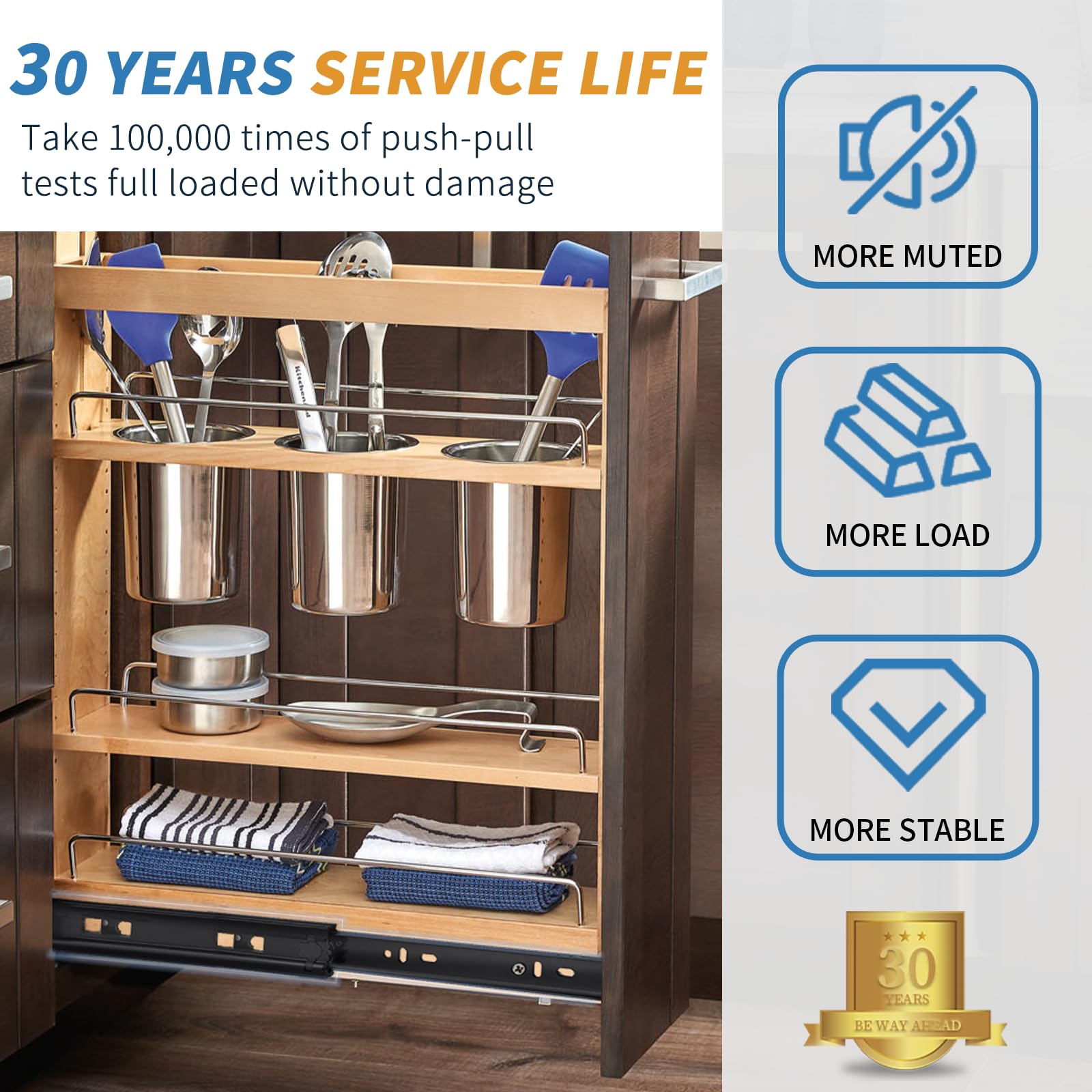 - 【MAXIMUM LOAD CAPACITY: 100lb 】 The slides is made of 1.5mm High - density cold-rolled steel plates,it will keep your drawers stable and safe even carrying up to 100 lb heavy weight items,which take 100,000 times of push-pull tests full loaded without damage,the service life of the slide rail could be 30 years at least.