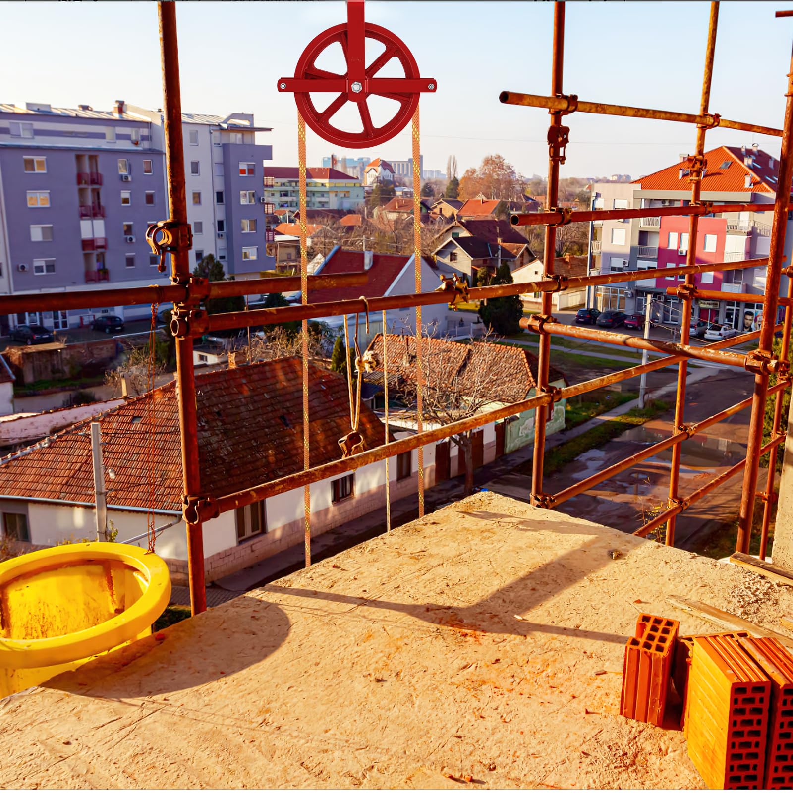 YJINGRUI Scaffold Hoist Pulley, 12" Scaffolding Wheels Cast Iron, 1000lbs Pulley Wheel Gin Wheel, Gin Block Pulleys for Lifting