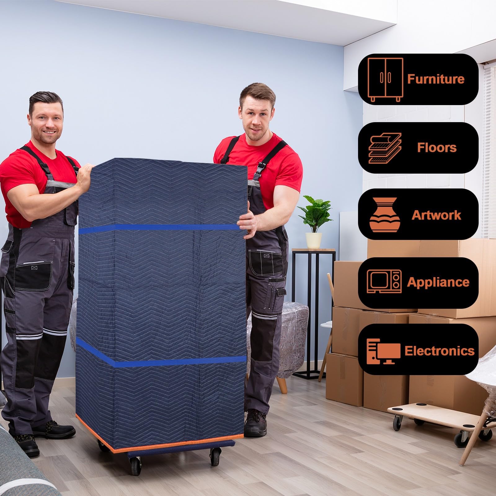 - 【Essential Bundle】6 heavy-grade 72"x40" packing blankets for moving (0.4in thick) + 3 pcs 196" Packing Band (each extends to 400"). Shield furniture, appliances & belongings from scuffs, impacts, and moisture during moves. Multi-layer padding maintains shape integrity with bound edges for durability.