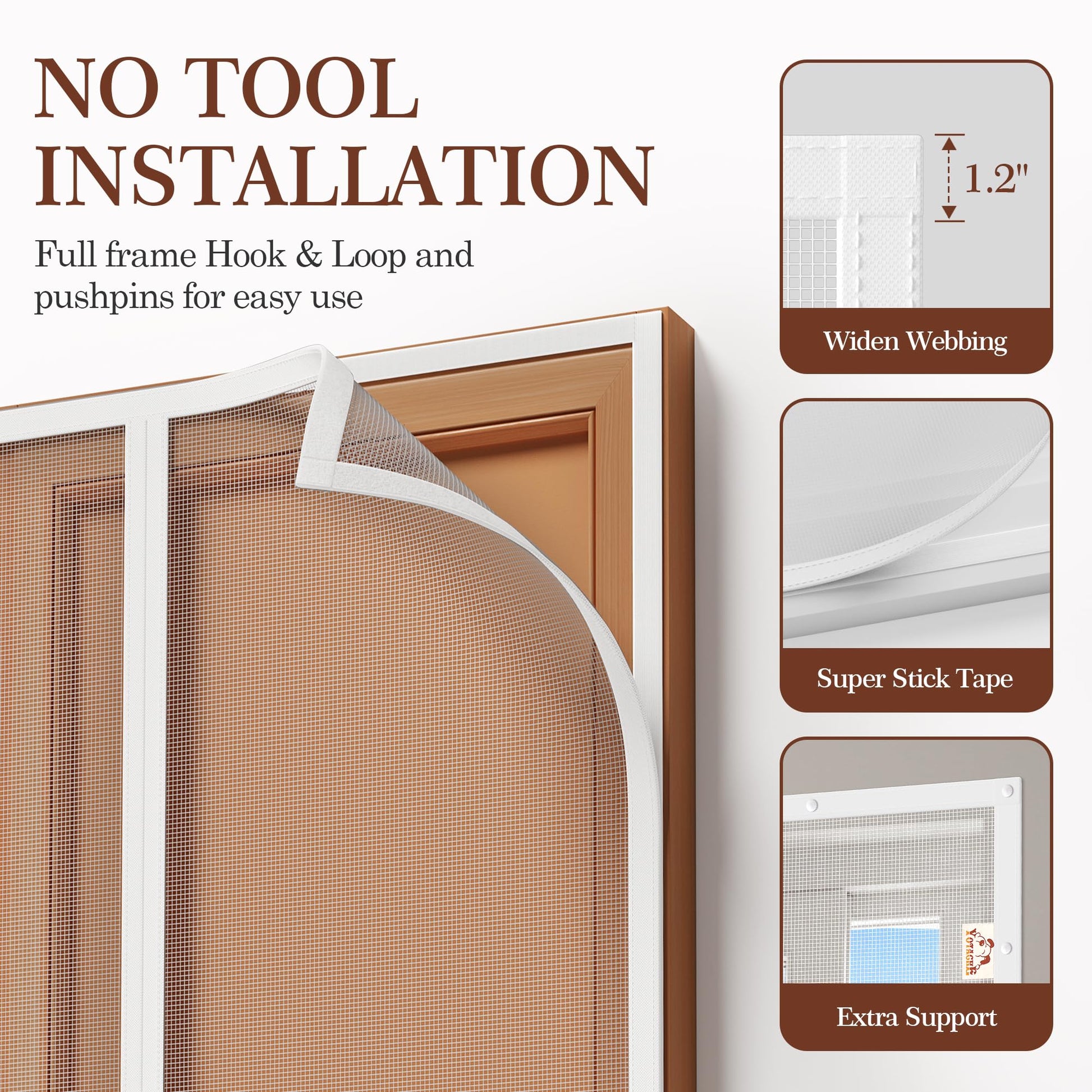 - EASY TO INSTALL: It is super simple, quick and fast to install the side opening screen door. Simply attach it to the door frame with the included Hook&loop strip. Extra push pins are included for added security and strength. For better adhesive results, first clean and dry your door frame properly. A clear installation instruction manual is included