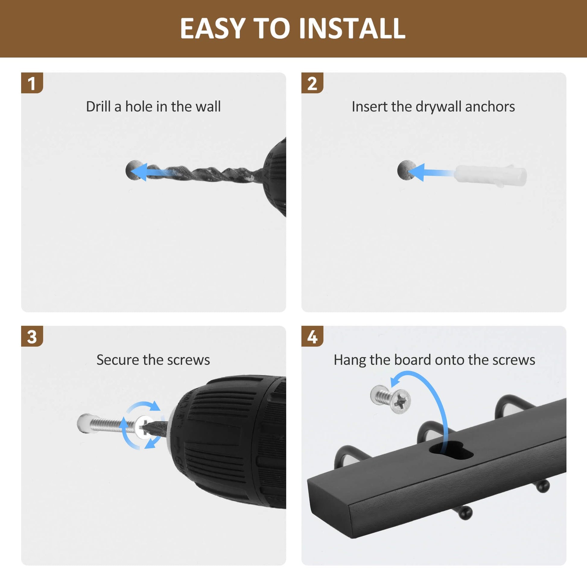 - Easy to Install: No complicated assembly required. Simply mark the holes on your wall, drill, and insert the included screws. Hang the racks on the screws, and your jewelry organizer is ready to use in no time.