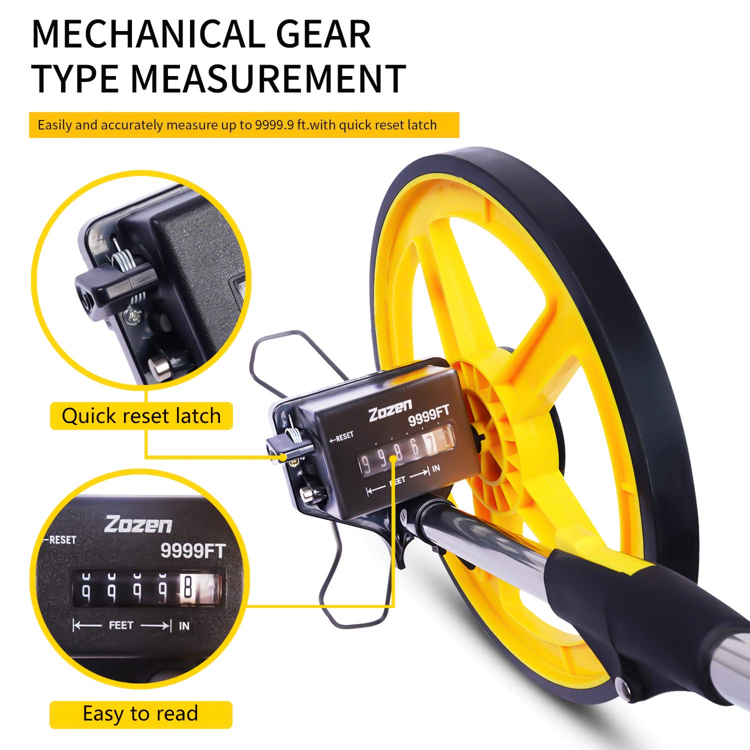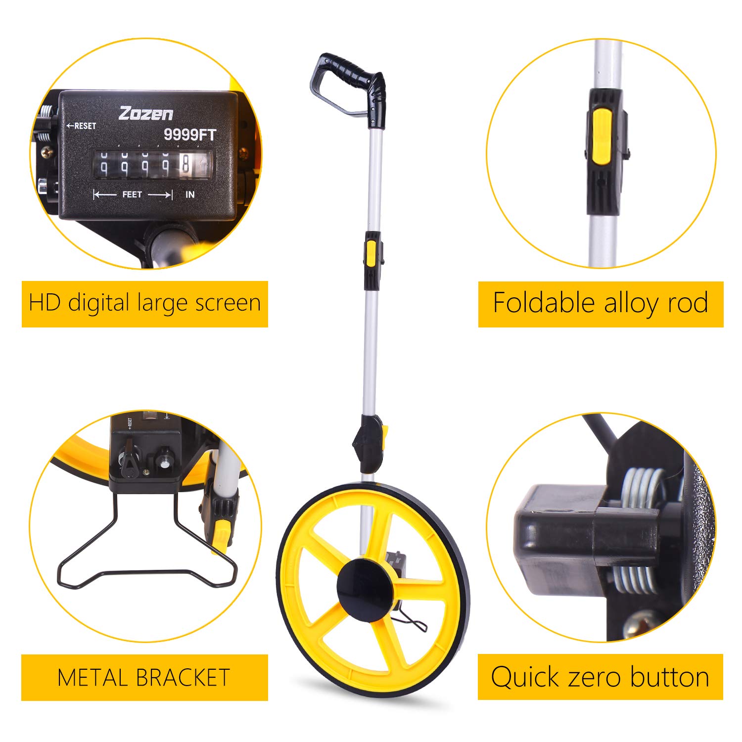 Zozen Measuring Wheel, Folding Portable Distance Measuring in Feet, Double Collapsible | One Key to Reset/Kickstand to Keep Stand/Starting Point Arrow and Cloth Carrying Bag, [0-9,999 Ft].